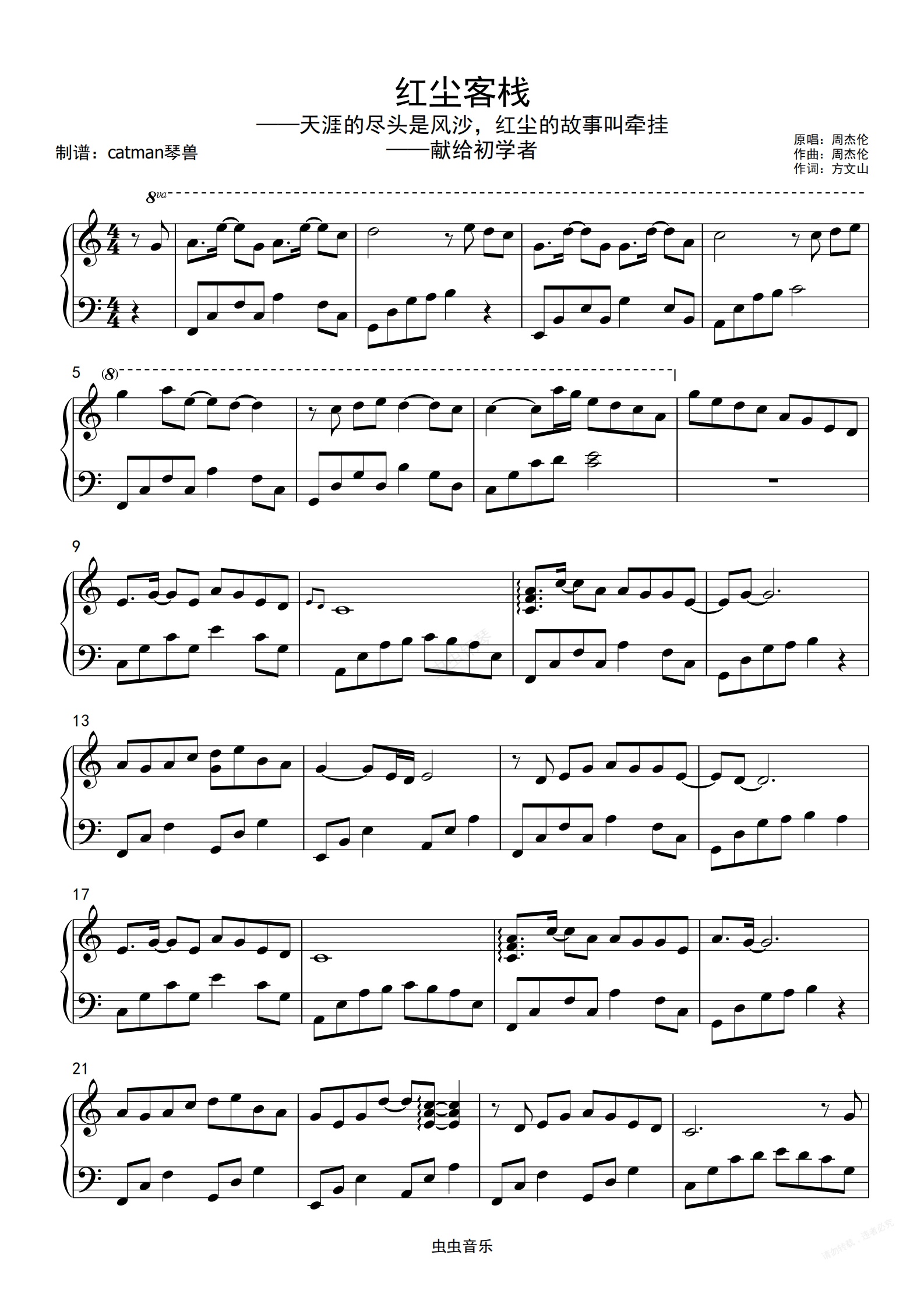 钢琴谱:红尘客栈-周杰伦-琴兽简单版