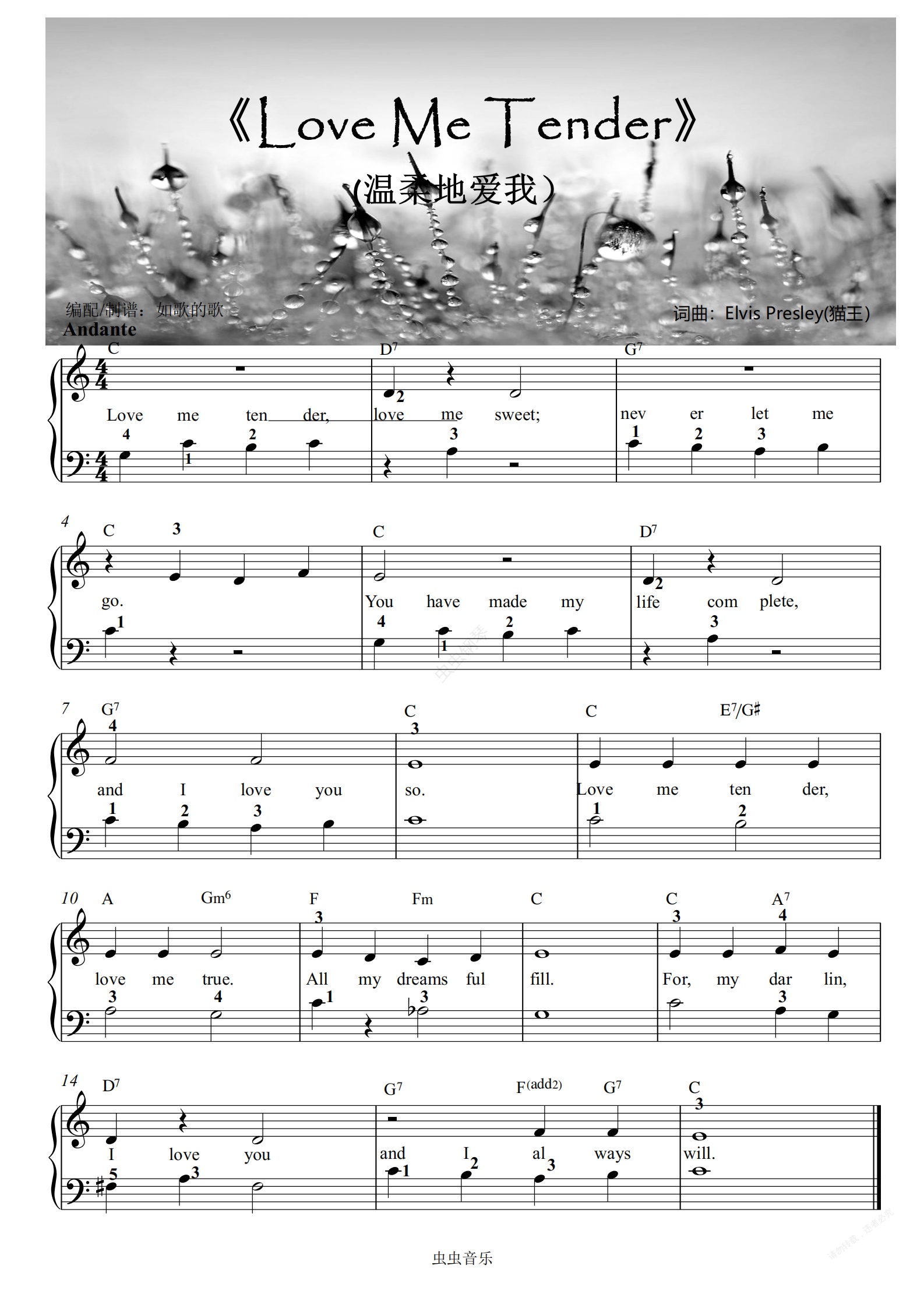 钢琴谱:Love me tender-入门也弹传世经典(大汤1小汤2程度,大字指法带歌词)
