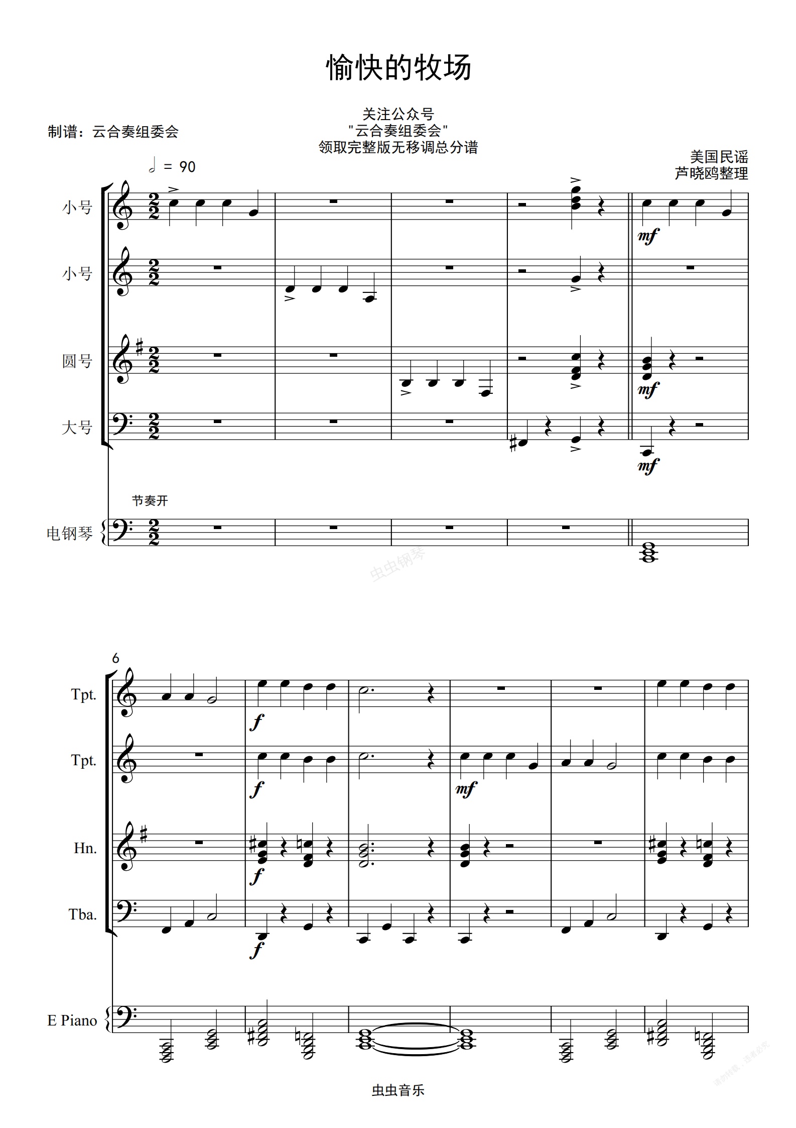 钢琴谱:《愉快的牧场》-键盘乐队版