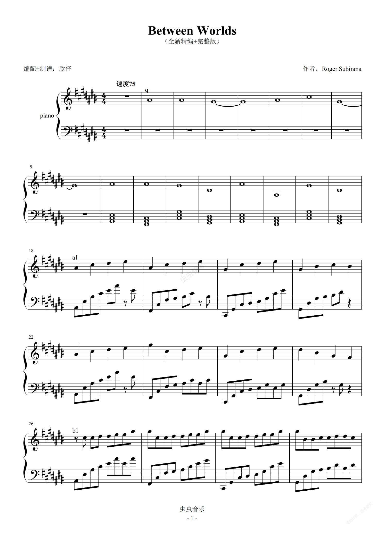 钢琴谱:升C-《Between Worlds》(全新精编+完整版)