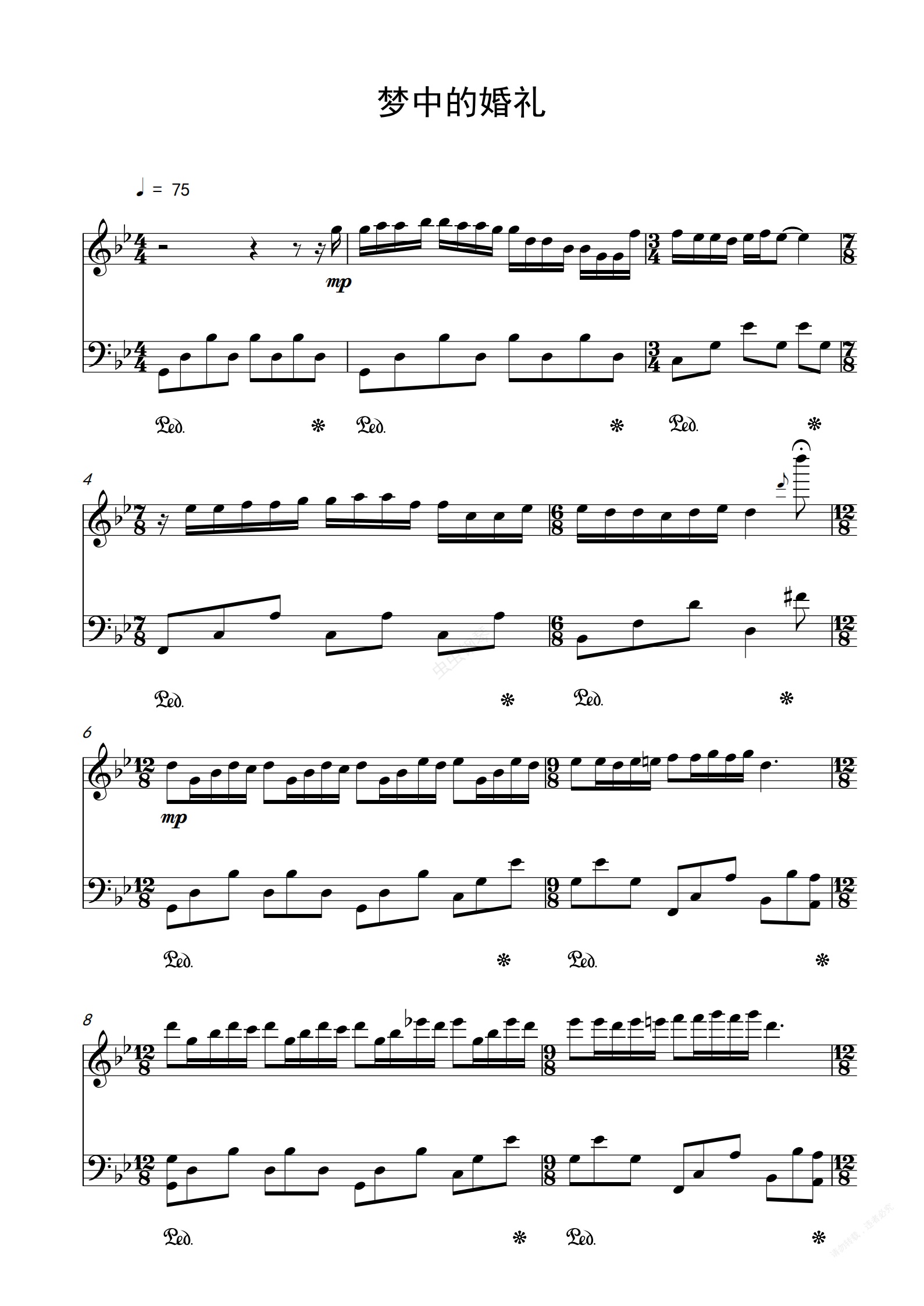 钢琴谱:梦中的婚礼【原版】