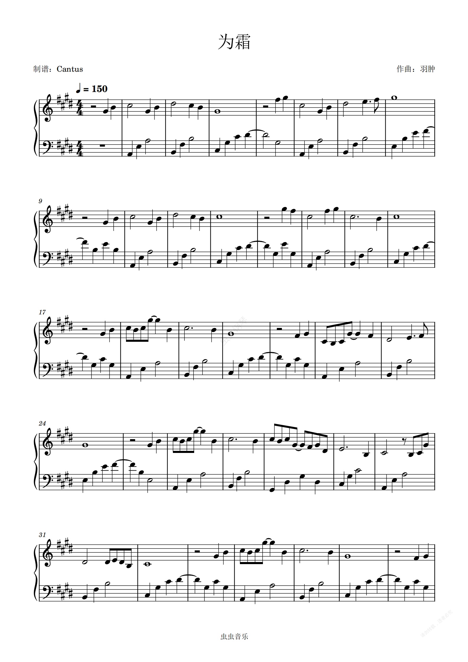钢琴谱:为霜-羽肿