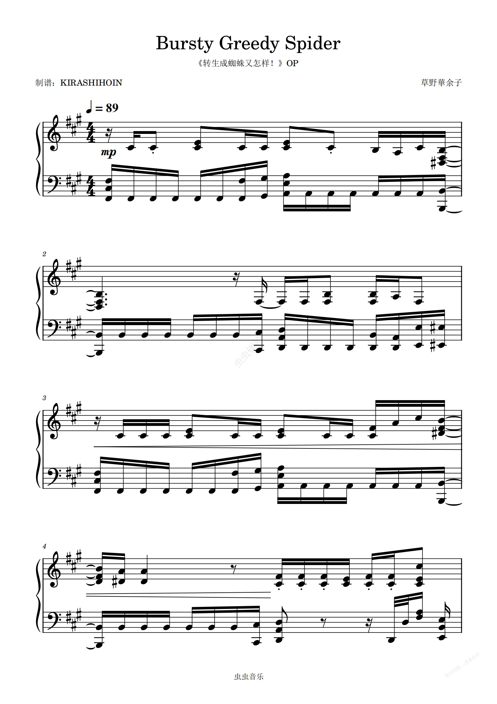 钢琴谱:Bursty Greedy Spider(《转生成蜘蛛又怎样!》OP)- 铃木木乃美