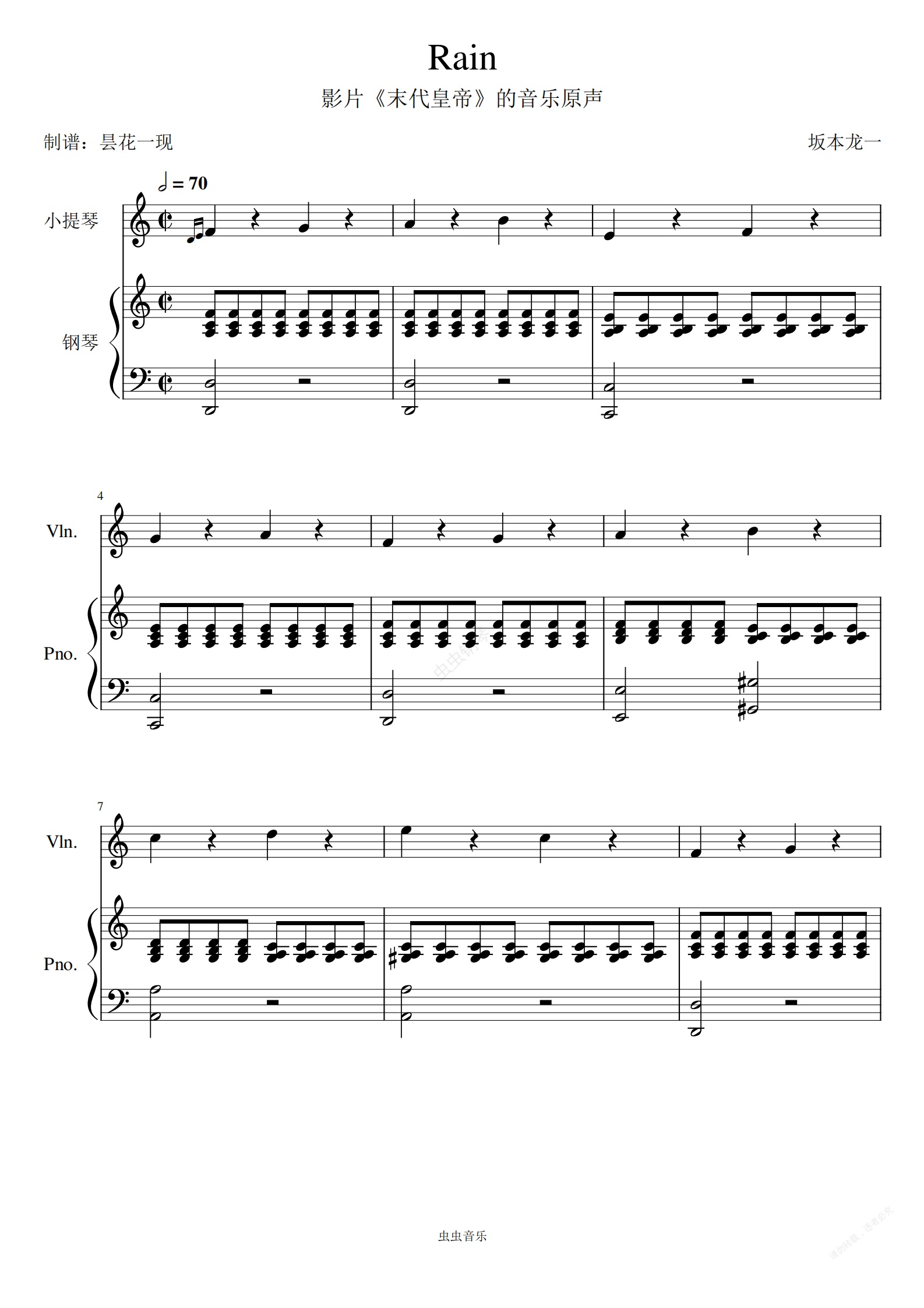 钢琴谱:Rain(原版乐谱)小提琴+钢琴 《末代皇帝》主题曲