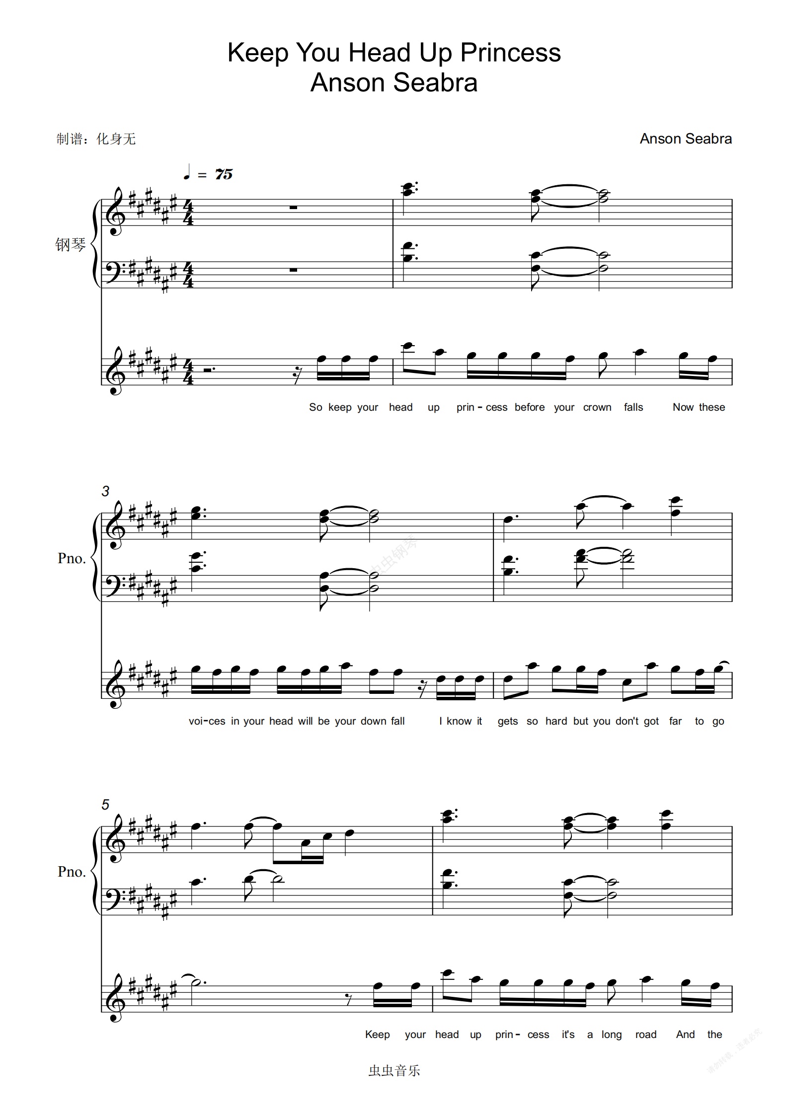 钢琴谱:Keep You Head Up Princess 原调弹唱