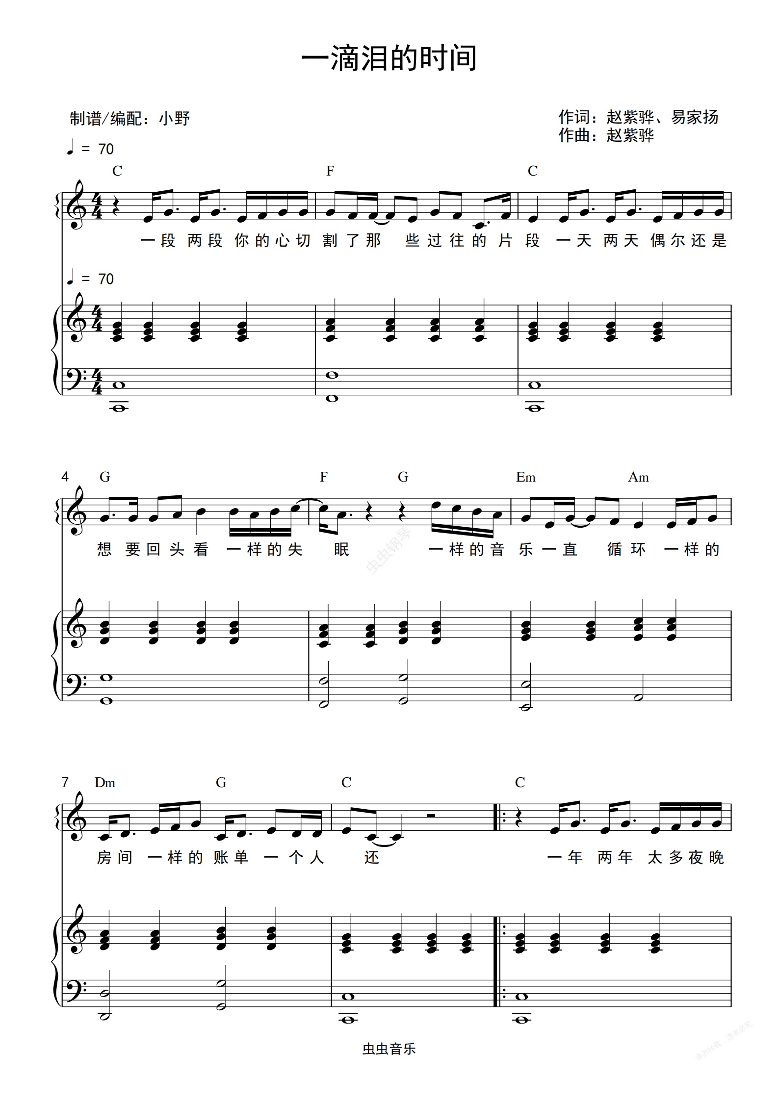 钢琴谱:一滴泪的时间(和弦弹唱版)
