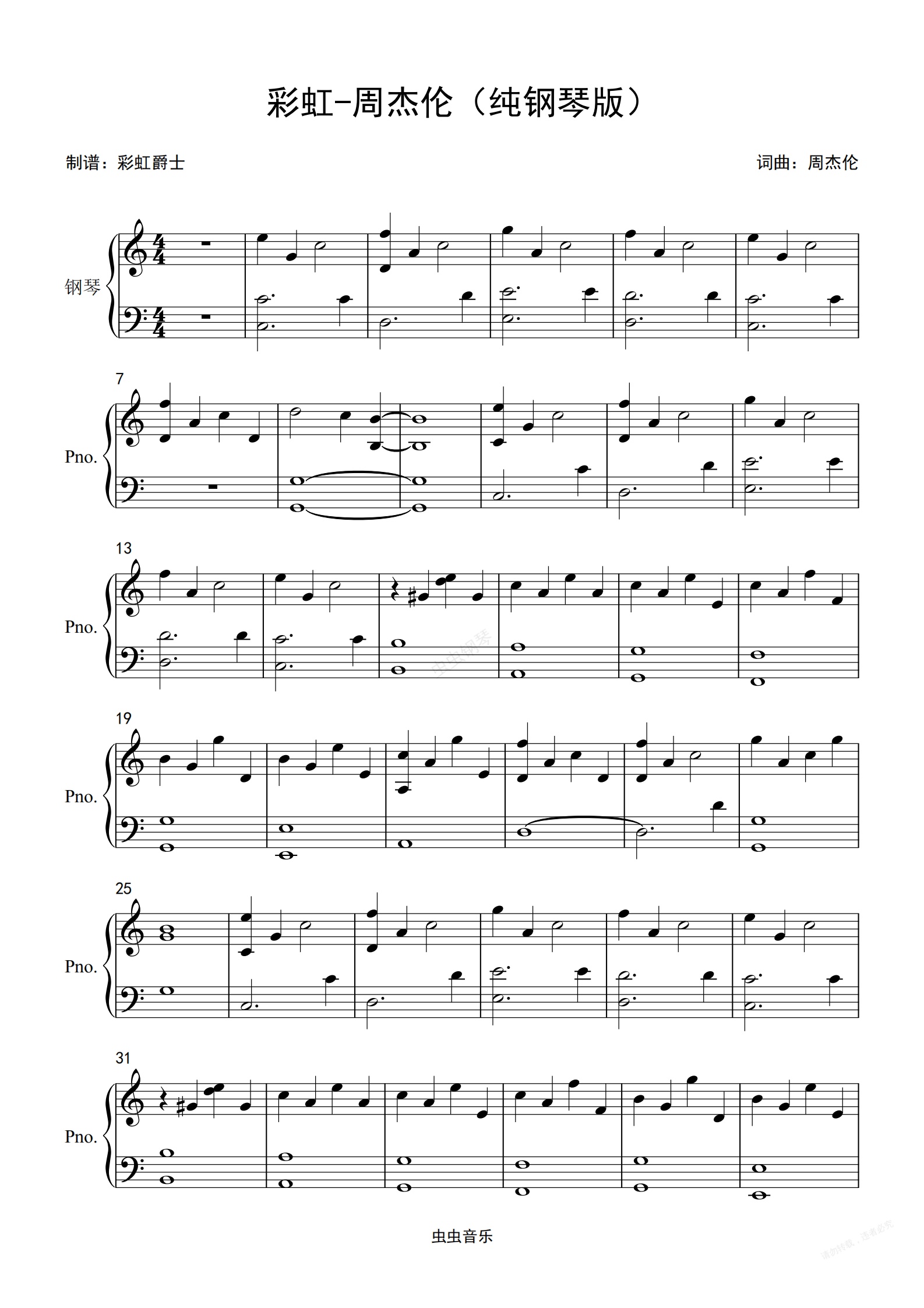 钢琴谱:彩虹-周杰伦-钢琴伴奏弹唱
