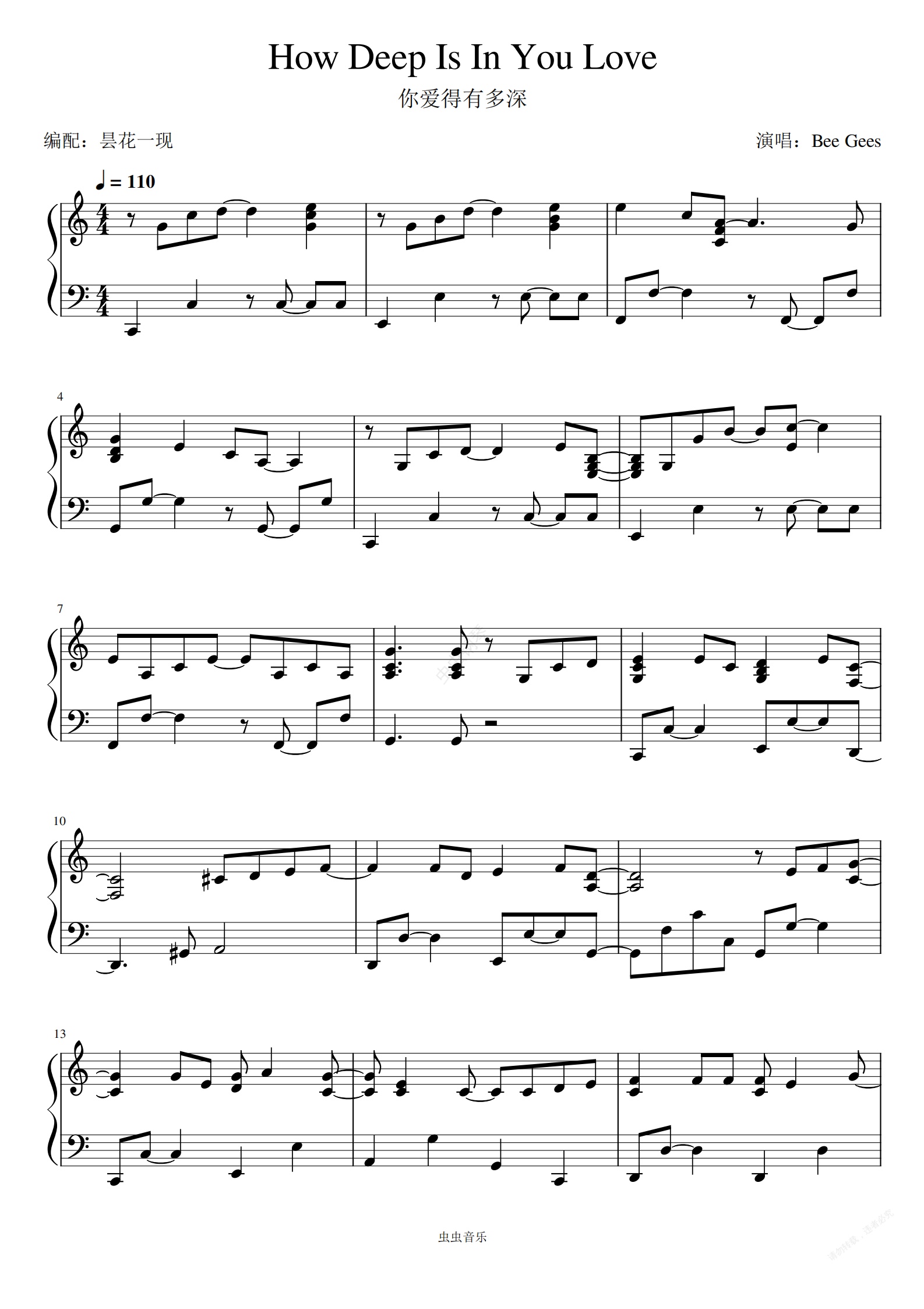 钢琴谱:How Deep Is In You Love-C调简单版(你爱得有多深)
