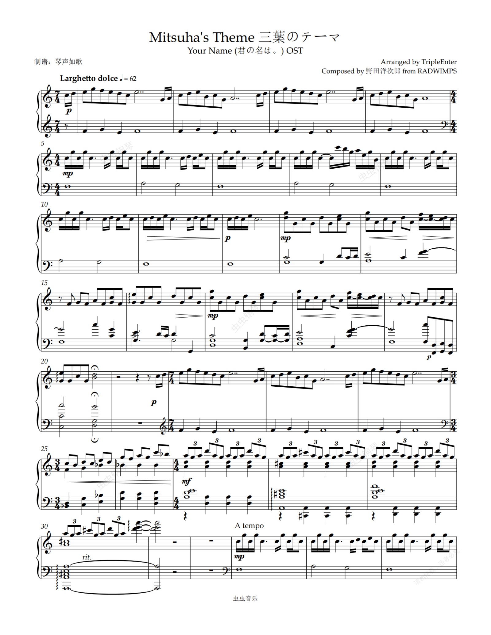 钢琴谱:三葉のテーマ (三叶的主题音乐)