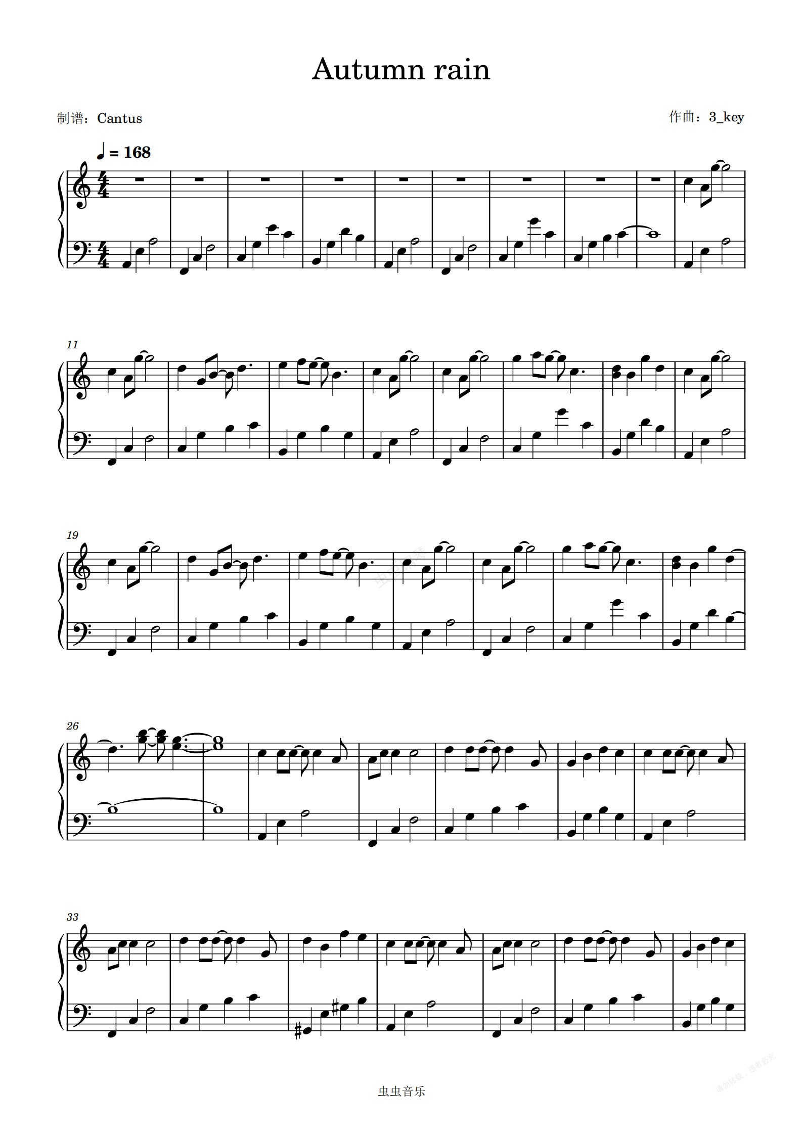 钢琴谱:Autumn rain/秋雨-3_key