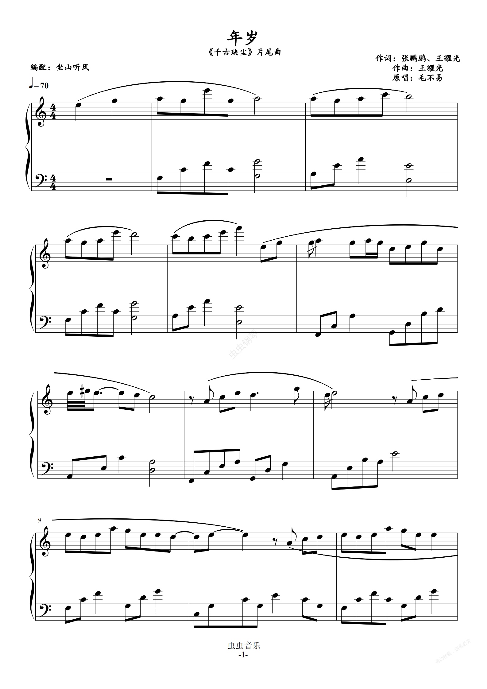 钢琴谱:【C调】年岁——《千古玦尘》片尾曲