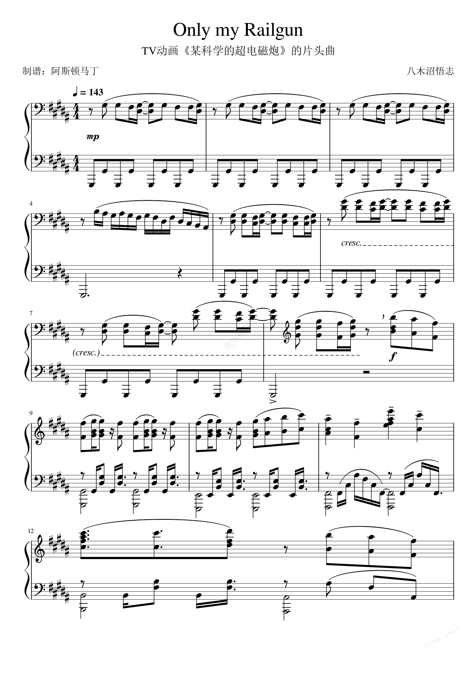 钢琴谱:Only my Railgun(某科学的超电磁炮)