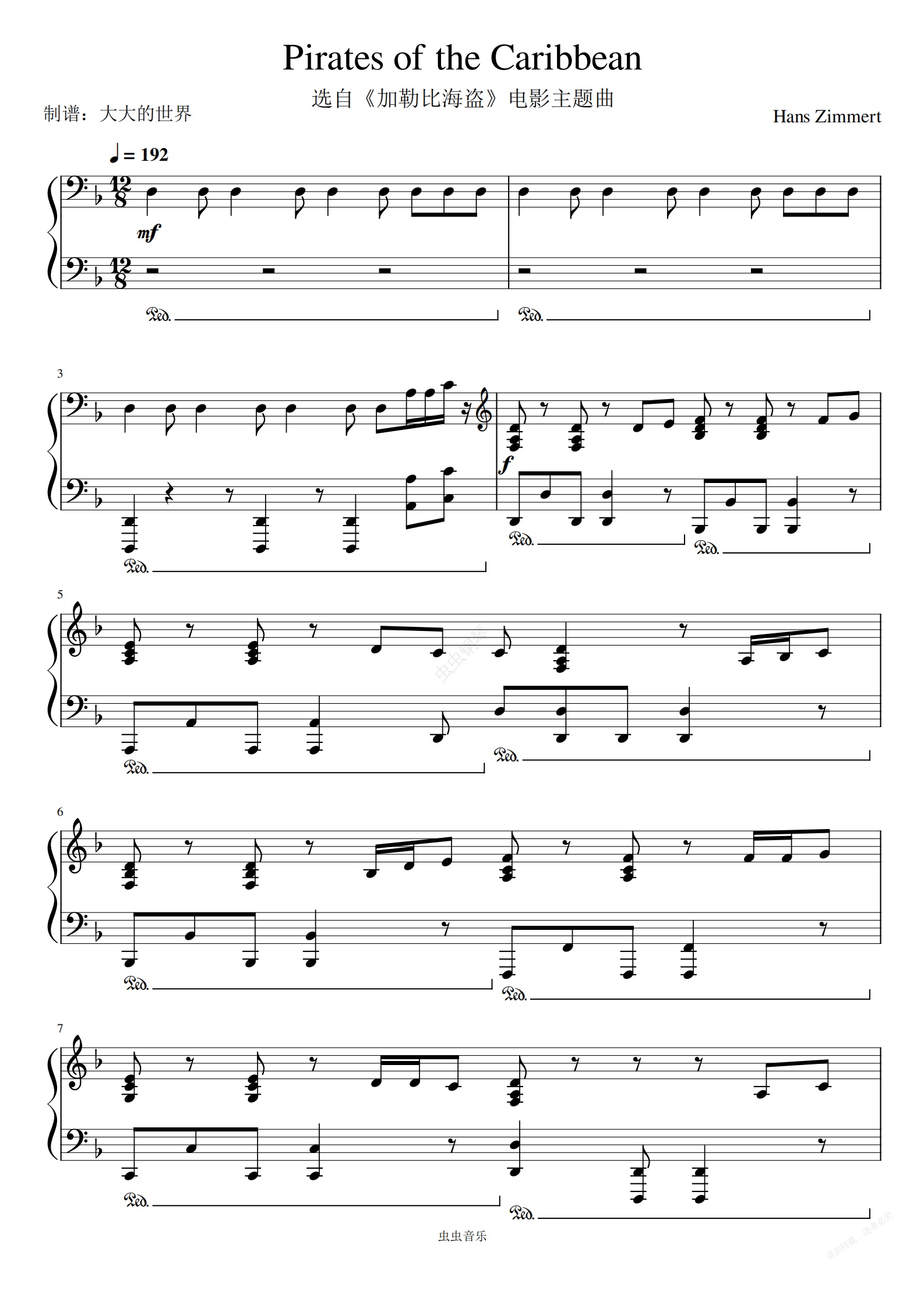 钢琴谱:《加勒比海盗》Pirates of the Caribbean