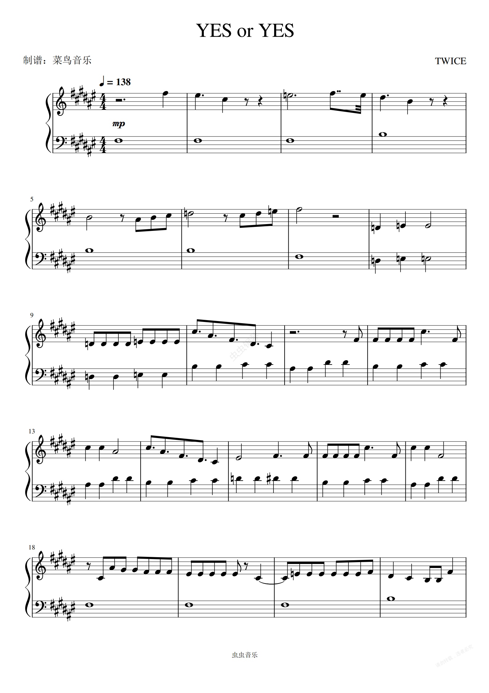 钢琴谱:《YES or YES》TWICE