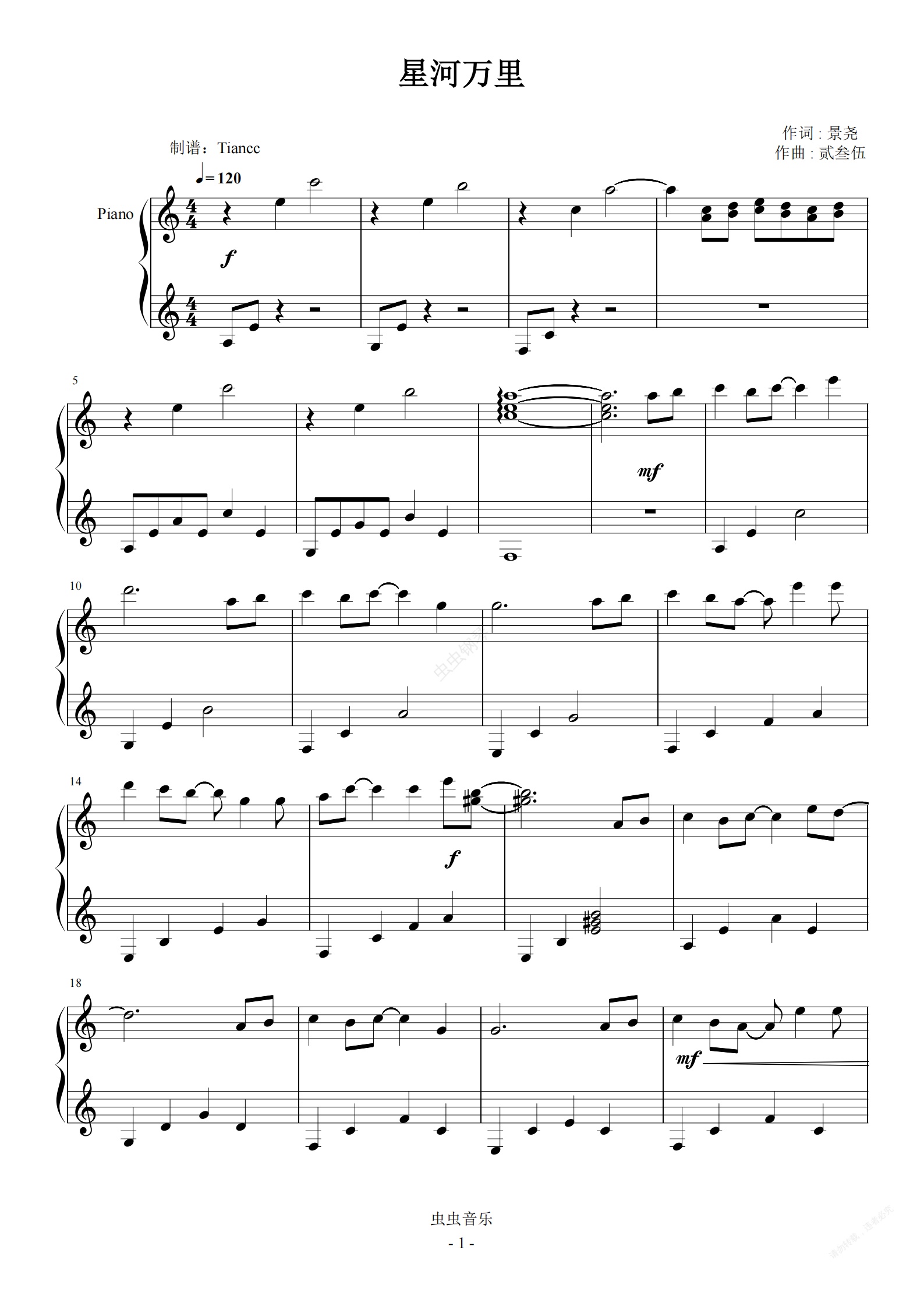 钢琴谱:《星河万里》Rom邢锐,超好听轻音乐,拜厄+难度