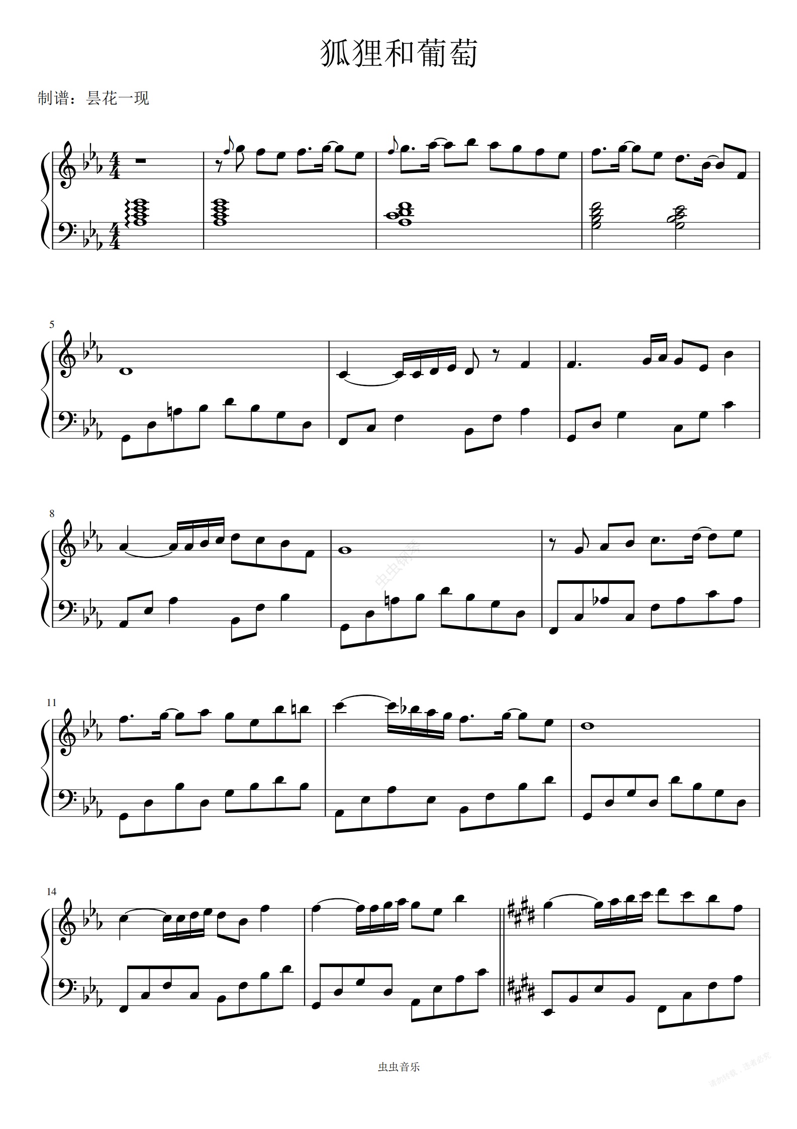 钢琴谱:狐狸和葡萄 - 优美钢琴轻音乐
