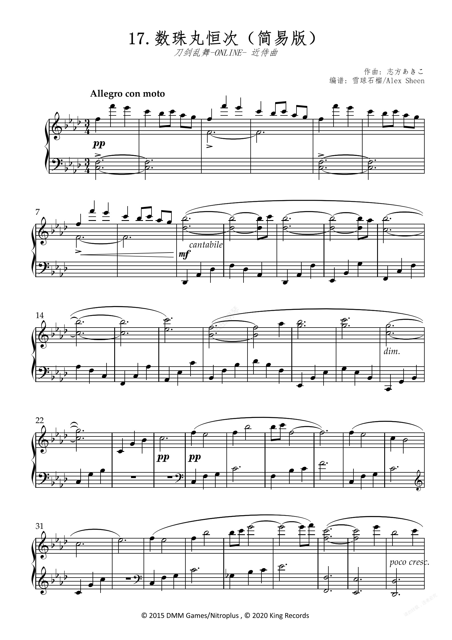 钢琴谱:数珠丸恒次 近侍曲 【刀剑乱舞】(简易版