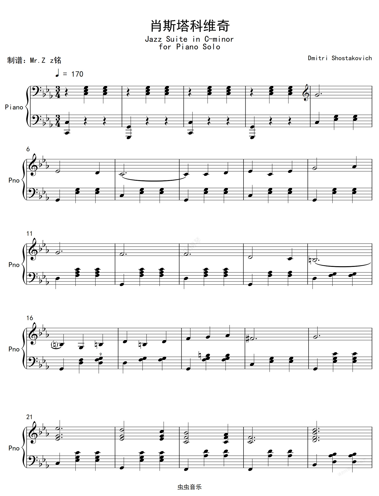 钢琴谱:原版【肖斯塔科维奇第二圆舞曲】JAZZ