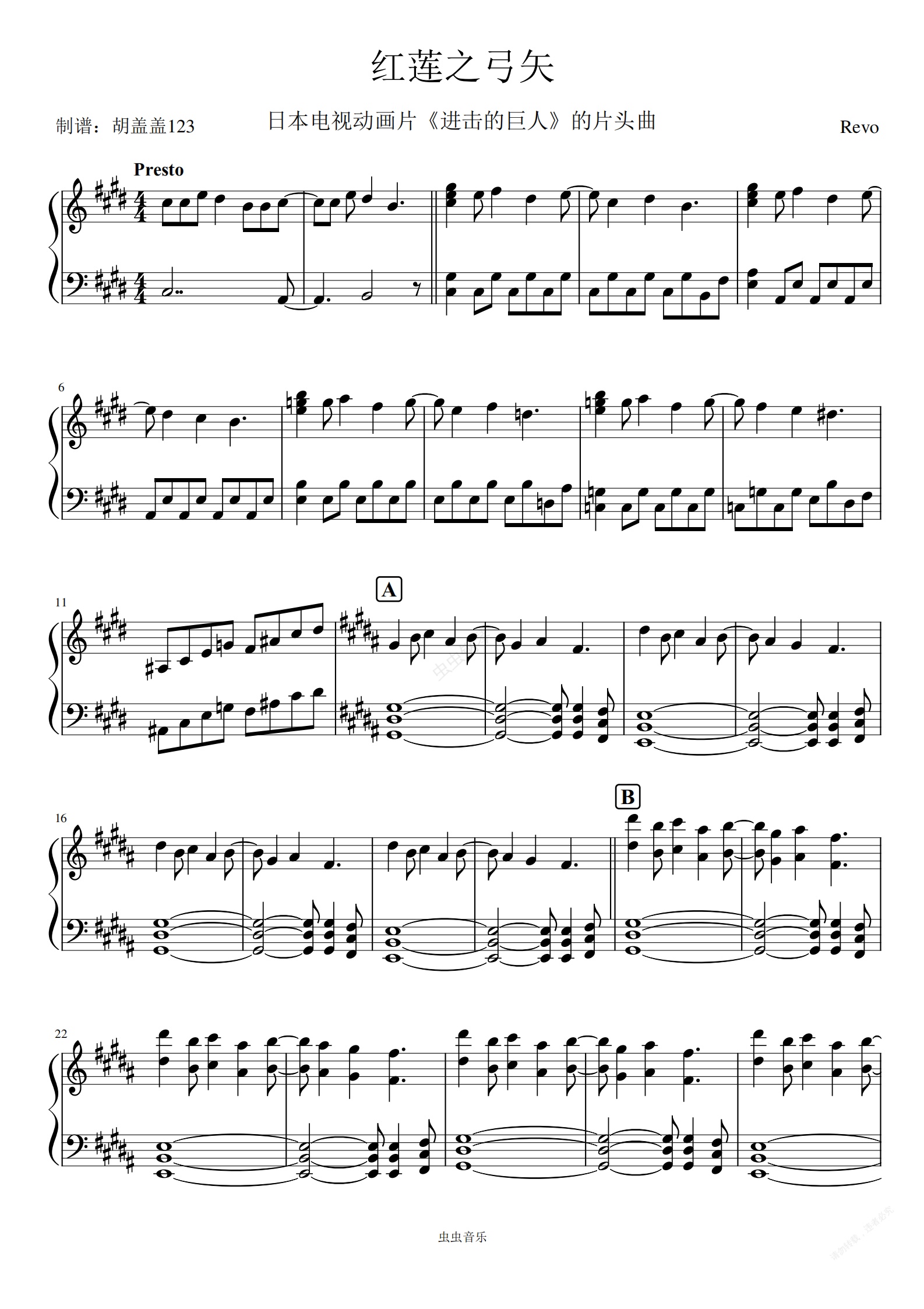 钢琴谱:红莲之弓矢(进击的巨人)