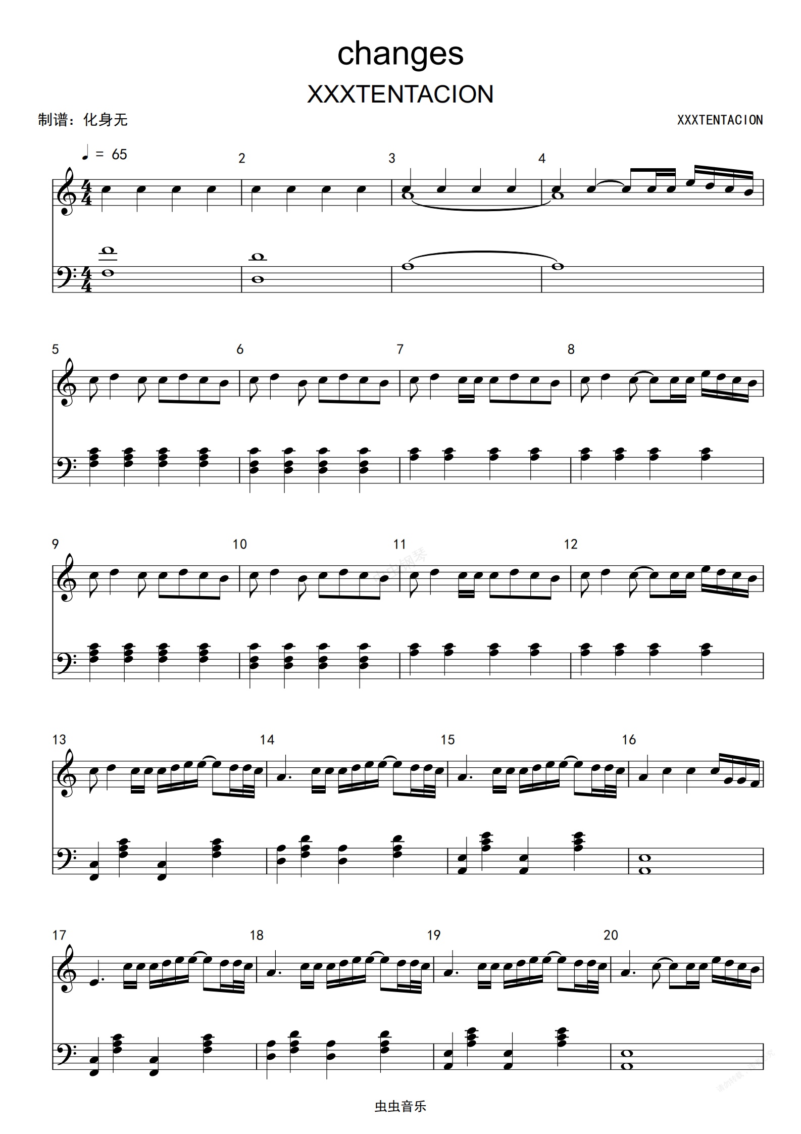 钢琴谱:changes C调独奏版