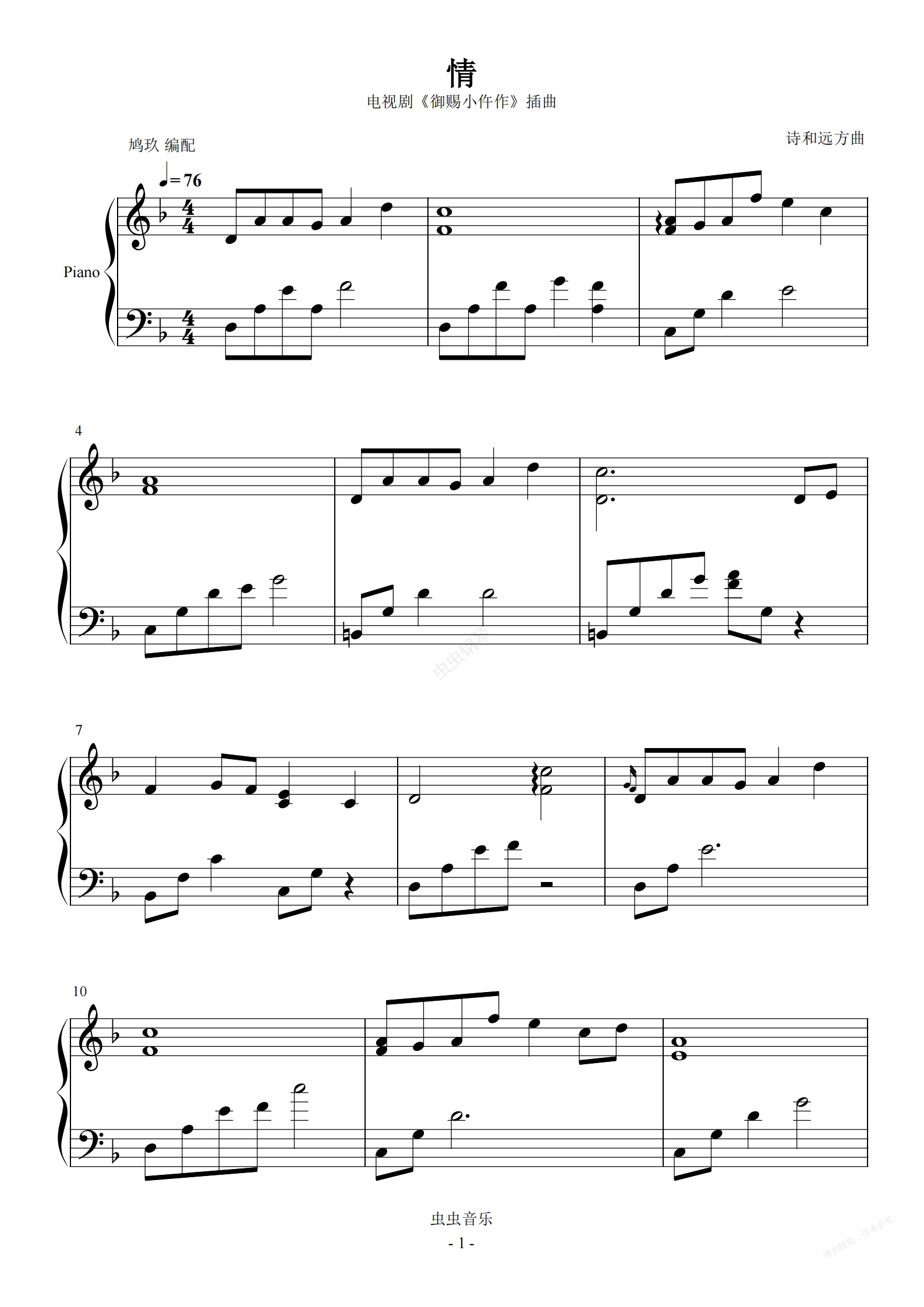 钢琴谱:情(电视剧《御赐小仵作》插曲)诗和远方