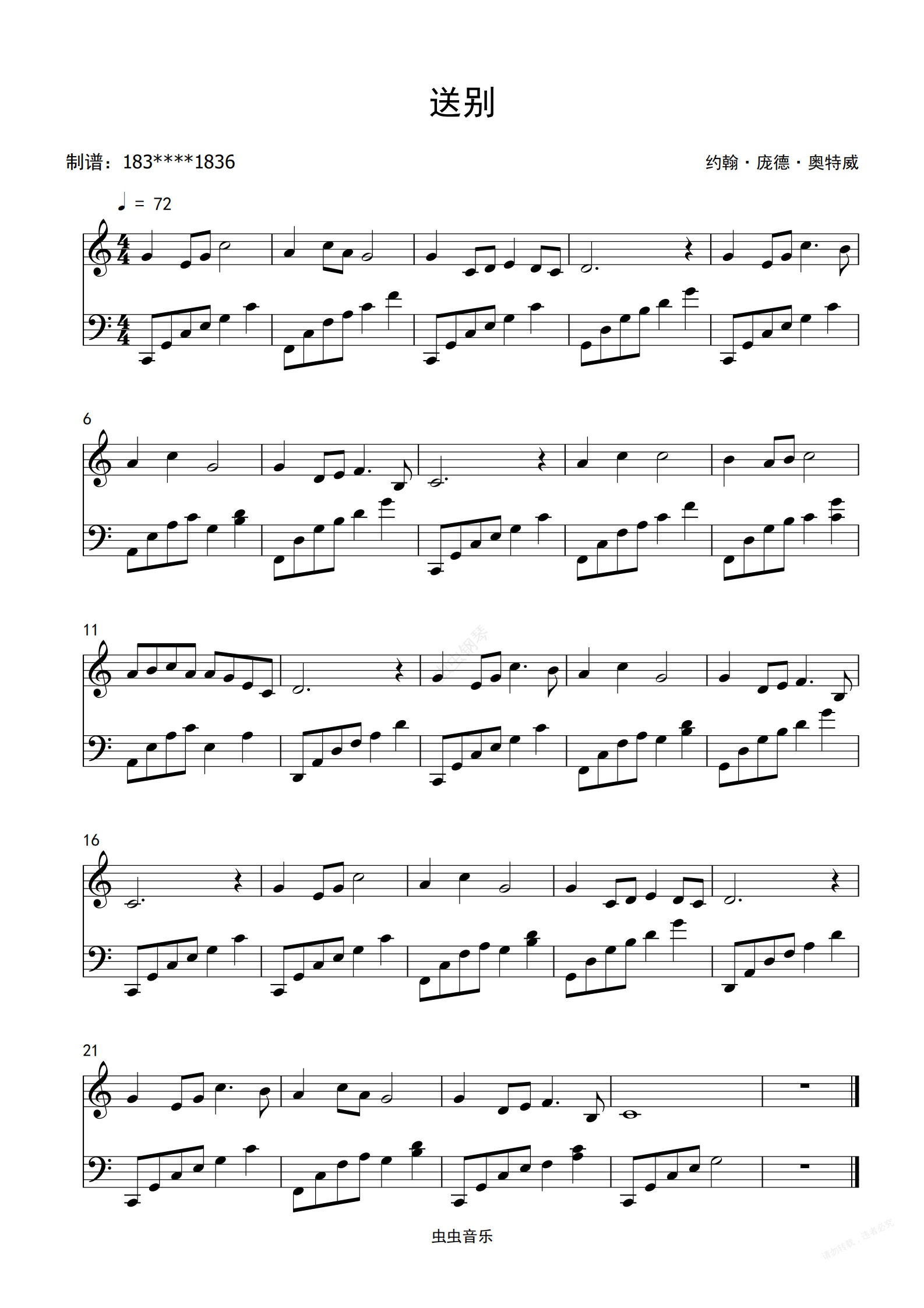 钢琴谱:送别-李叔同【新手入门 超简单】