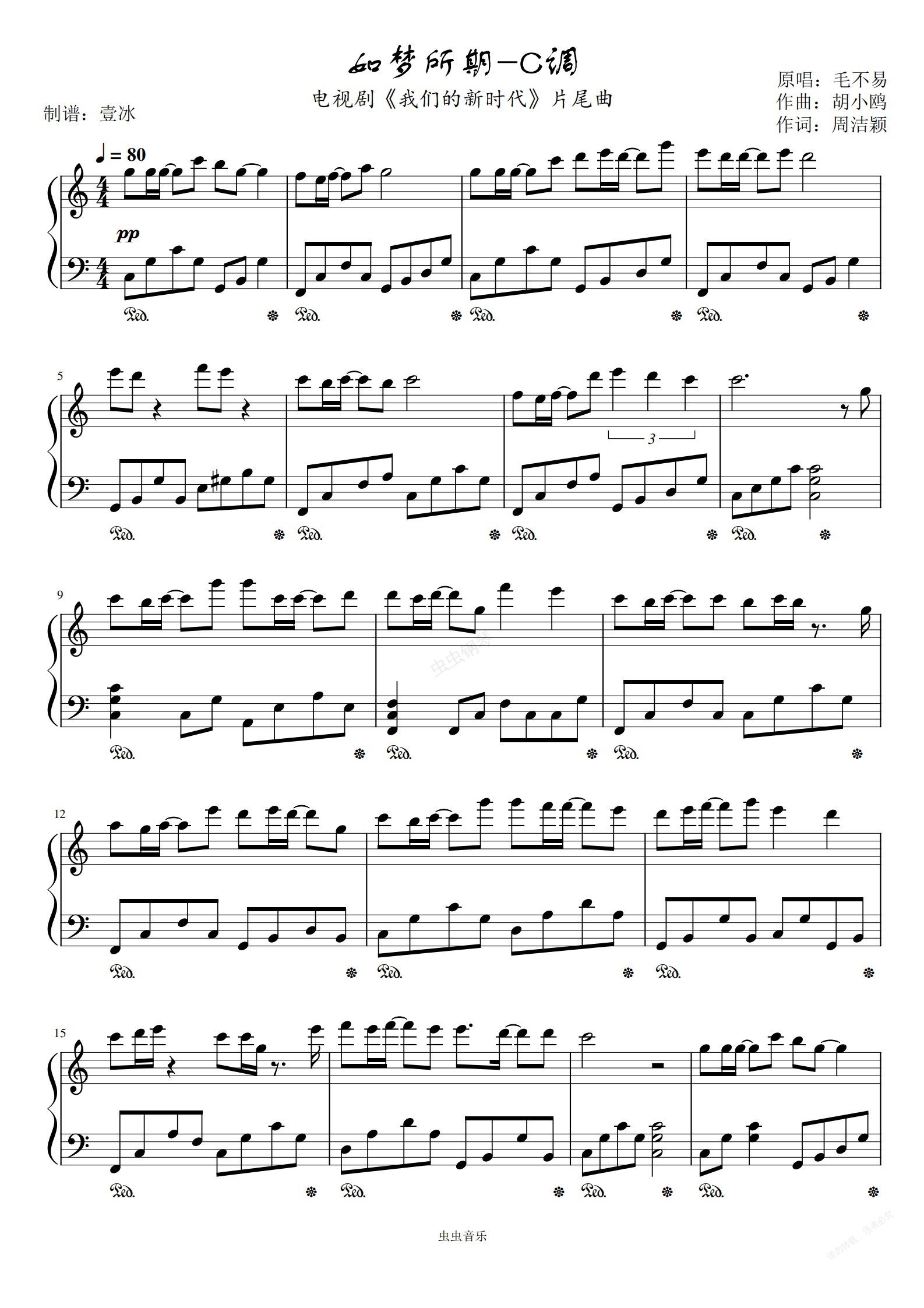 钢琴谱:如梦所期//电视剧《我们的新时代》片尾曲-C调