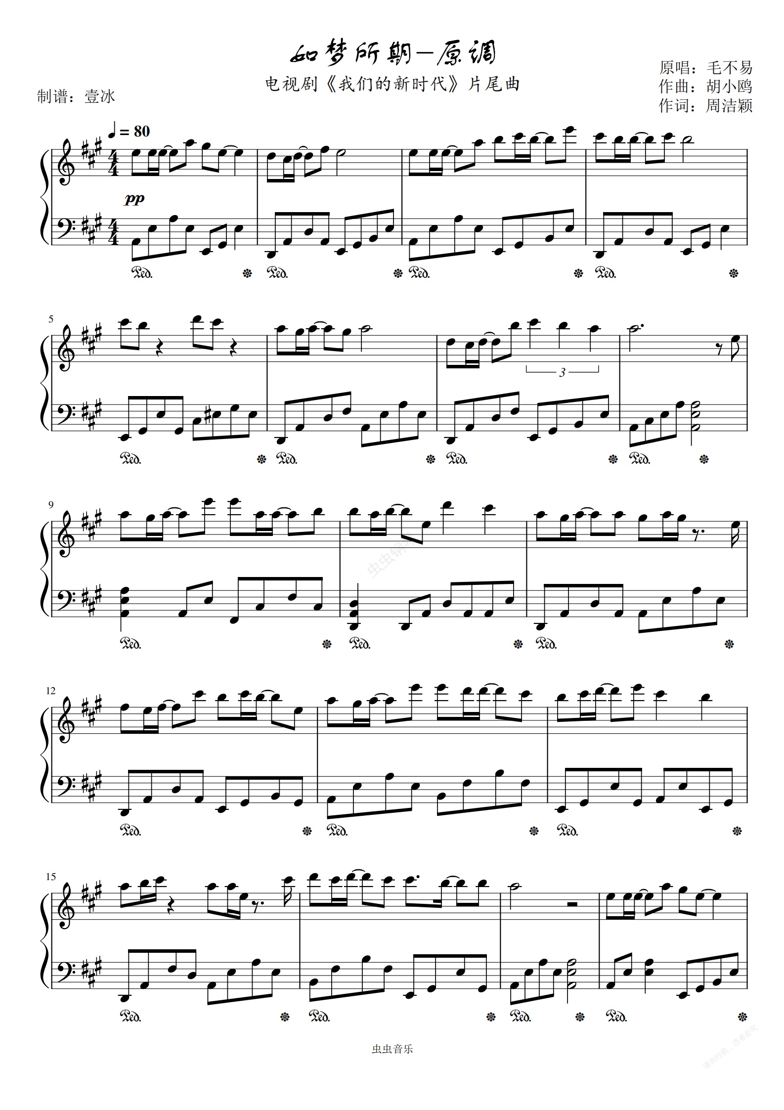 钢琴谱:如梦所期//电视剧《我们的新时代》片尾曲-原调版