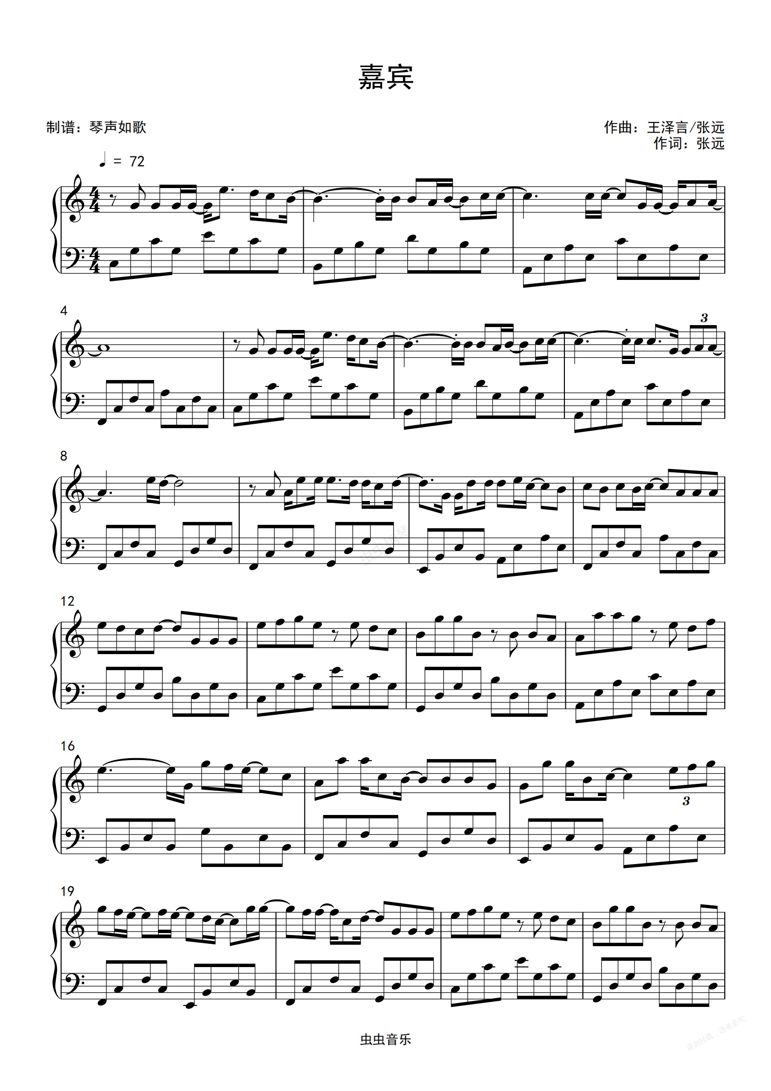 钢琴谱:嘉宾 -天谕系列 好听易弹