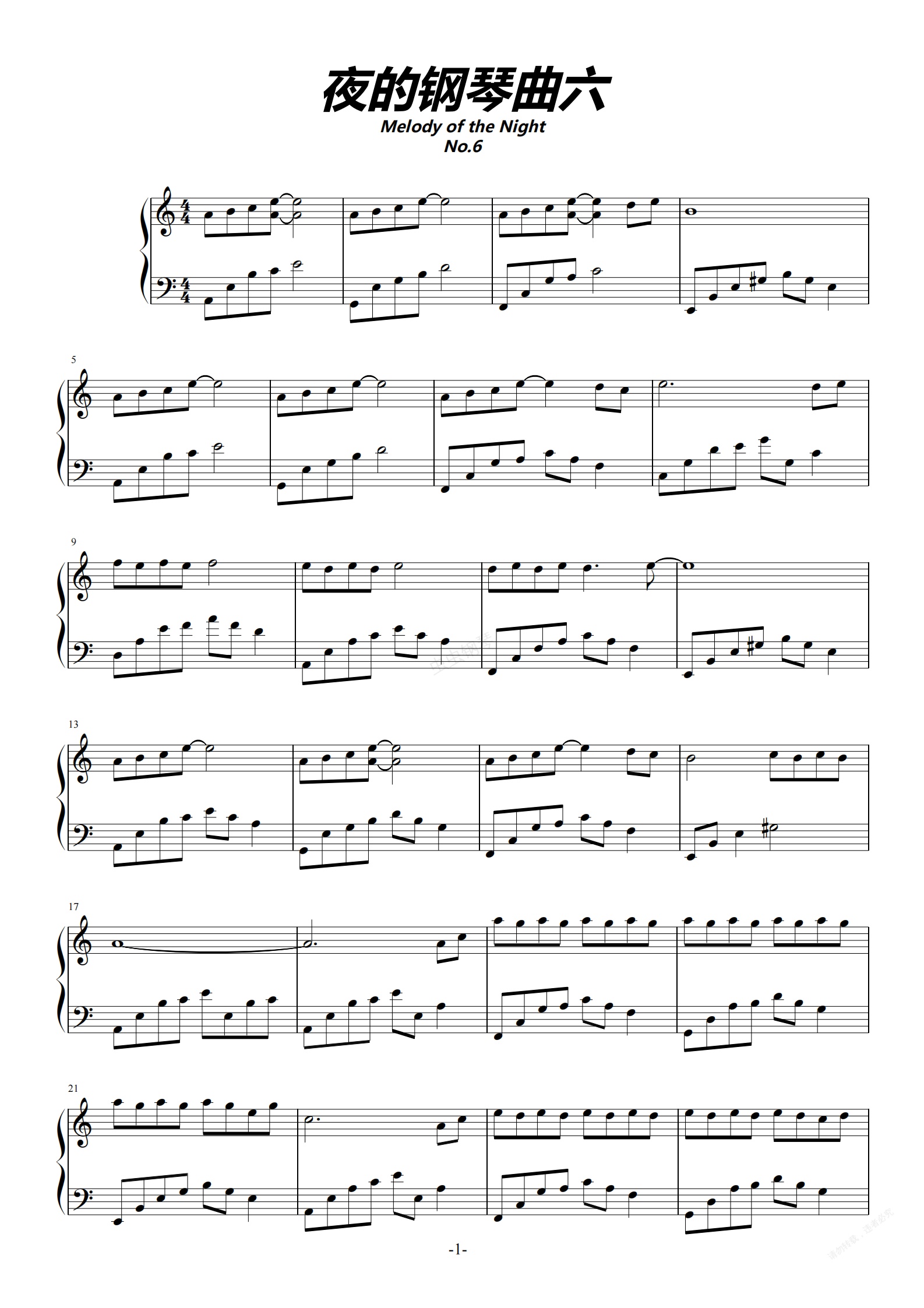 钢琴谱:夜的钢琴曲6