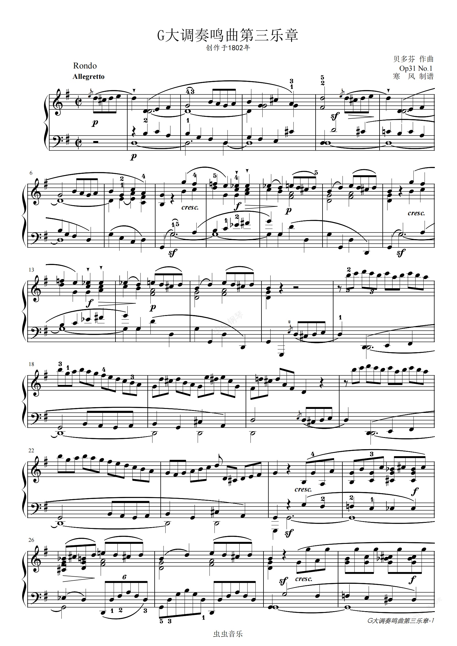 钢琴谱:贝多芬--G大调第16钢琴奏鸣曲第三乐章