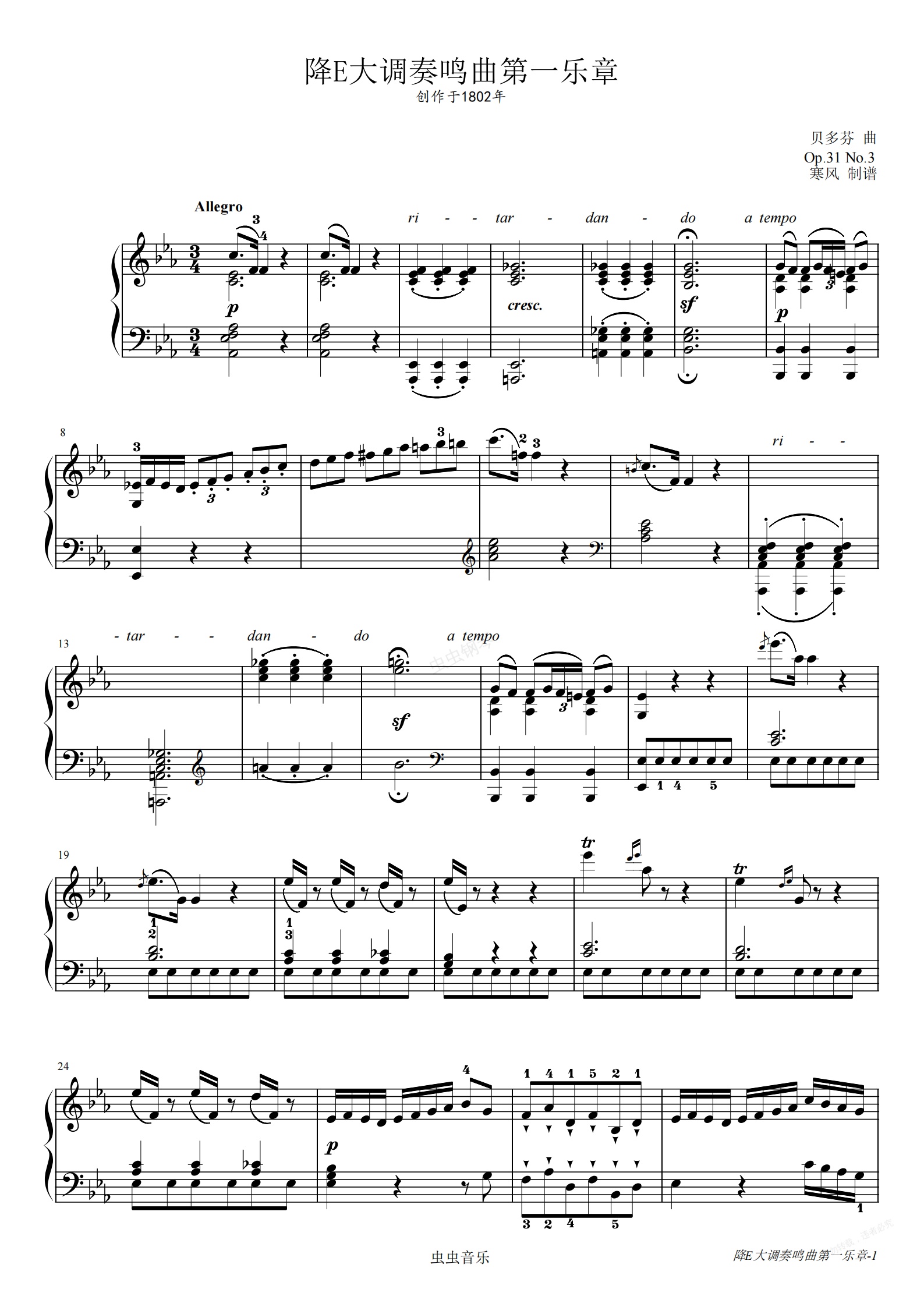 钢琴谱:贝多芬-降E大调第18钢琴奏鸣曲第一乐章
