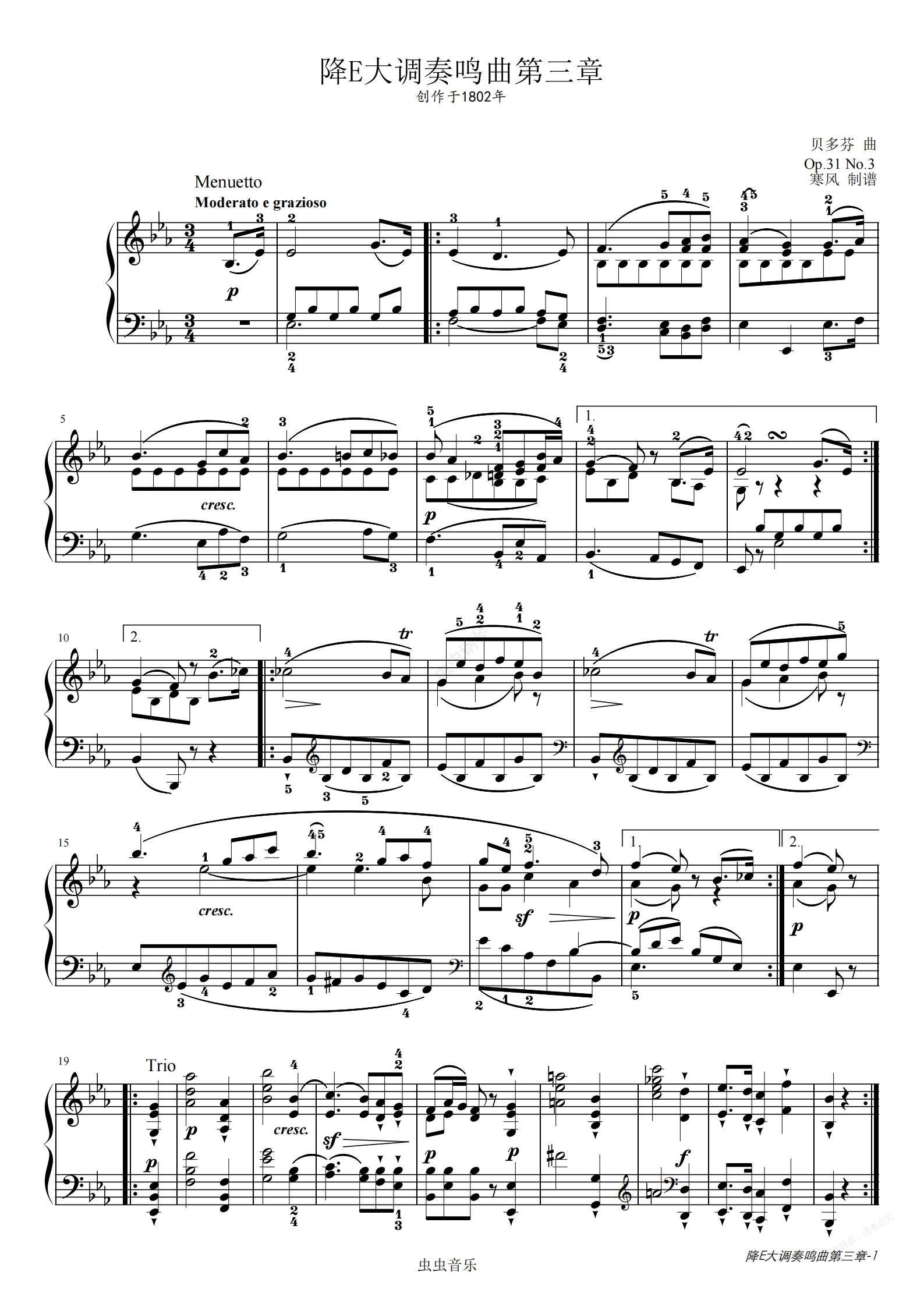 钢琴谱:贝多芬-降E大调第18钢琴奏鸣曲第三乐章