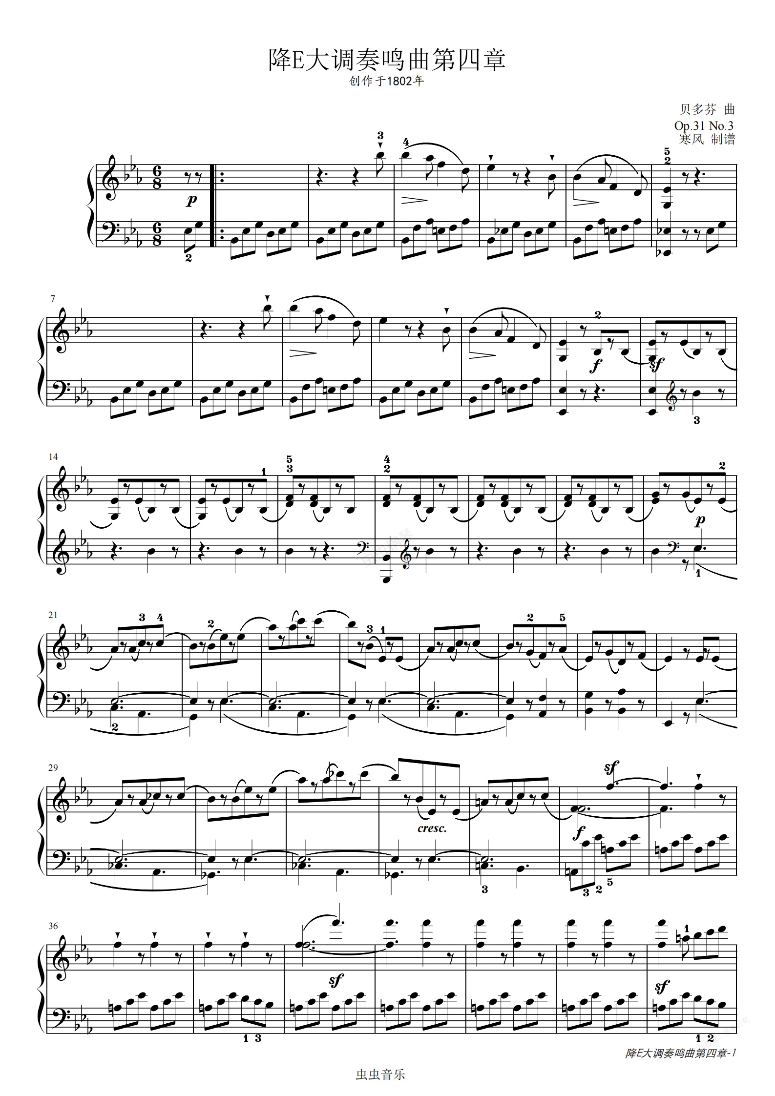 钢琴谱:贝多芬-降E大调第18钢琴奏鸣曲第四乐章