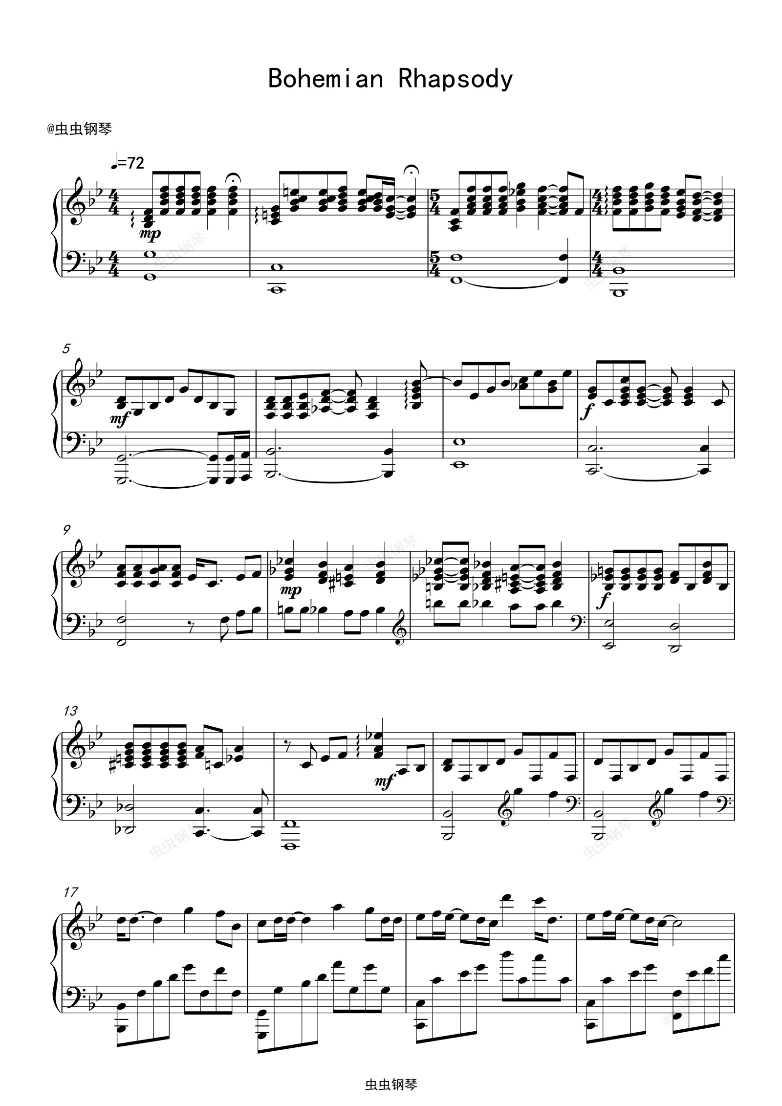 钢琴谱:波西米亚狂想曲钢琴独奏版