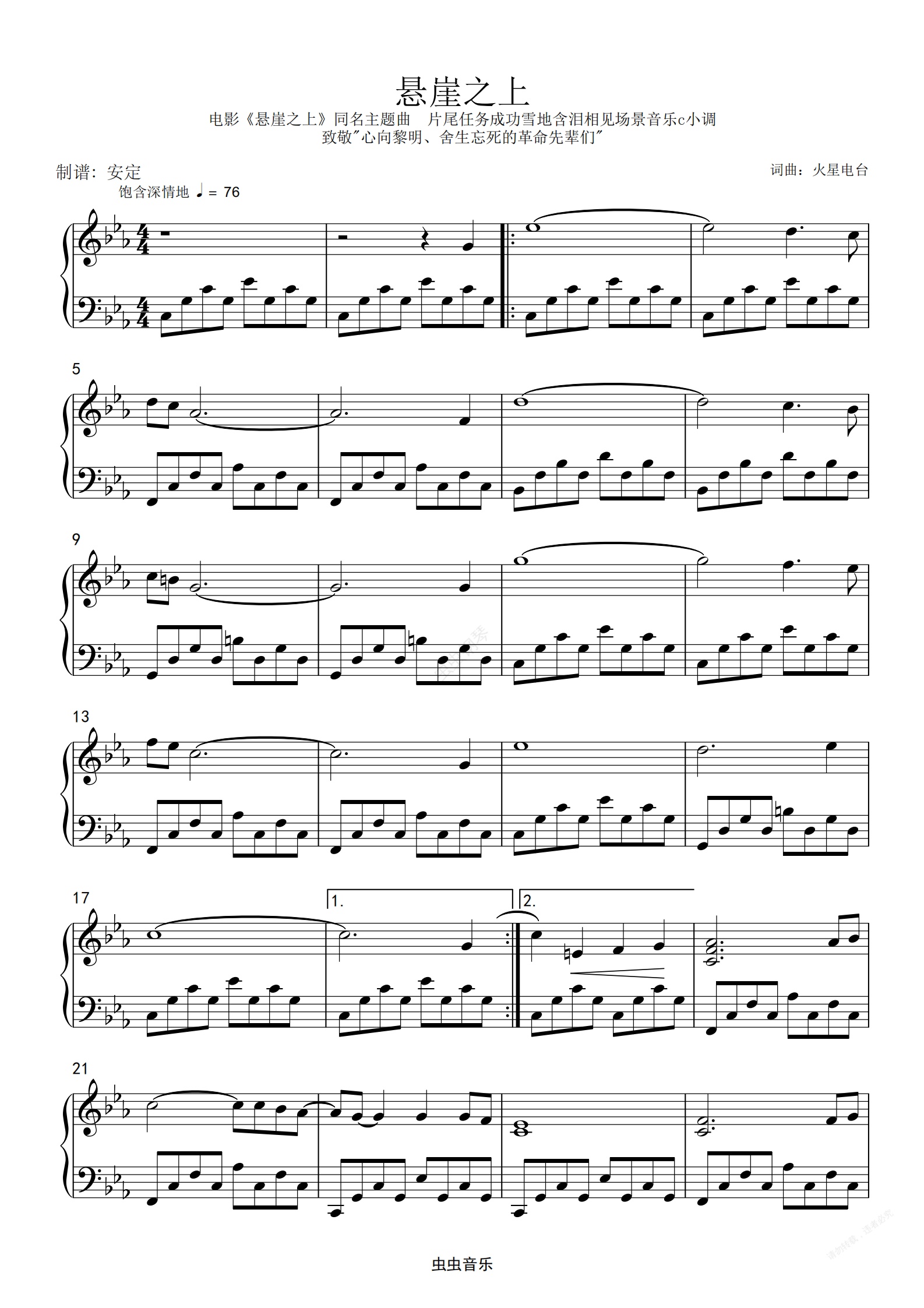 钢琴谱:悬崖之上c小调