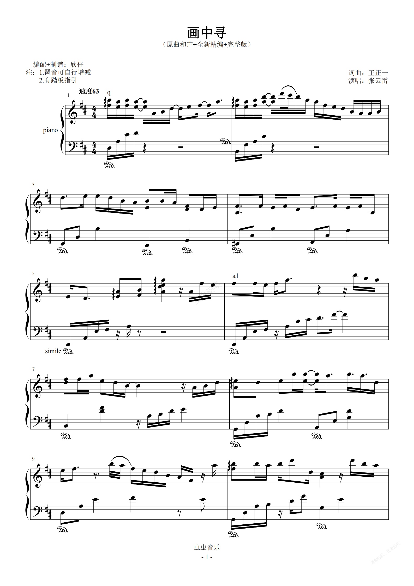 钢琴谱:张云雷-D《画中寻》(原曲和声+全新精编+完整版)