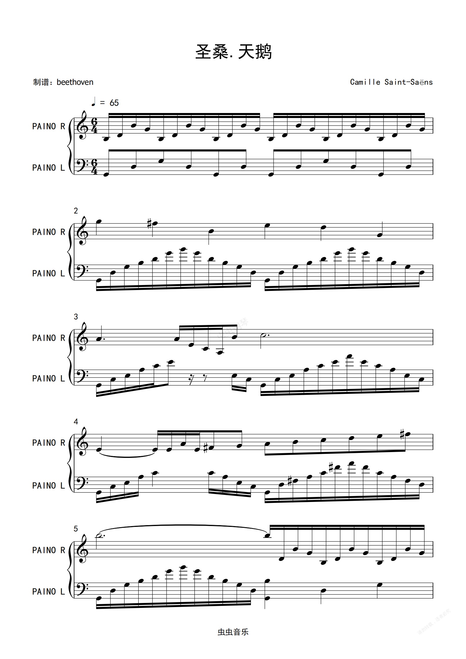 钢琴谱:《天鹅》圣桑-夏尔·卡米尔·圣-桑