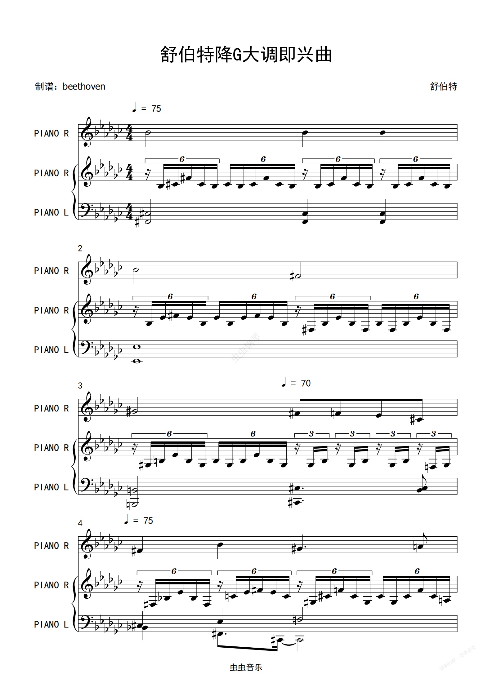 钢琴谱:舒伯特降G大调即兴曲——舒伯特