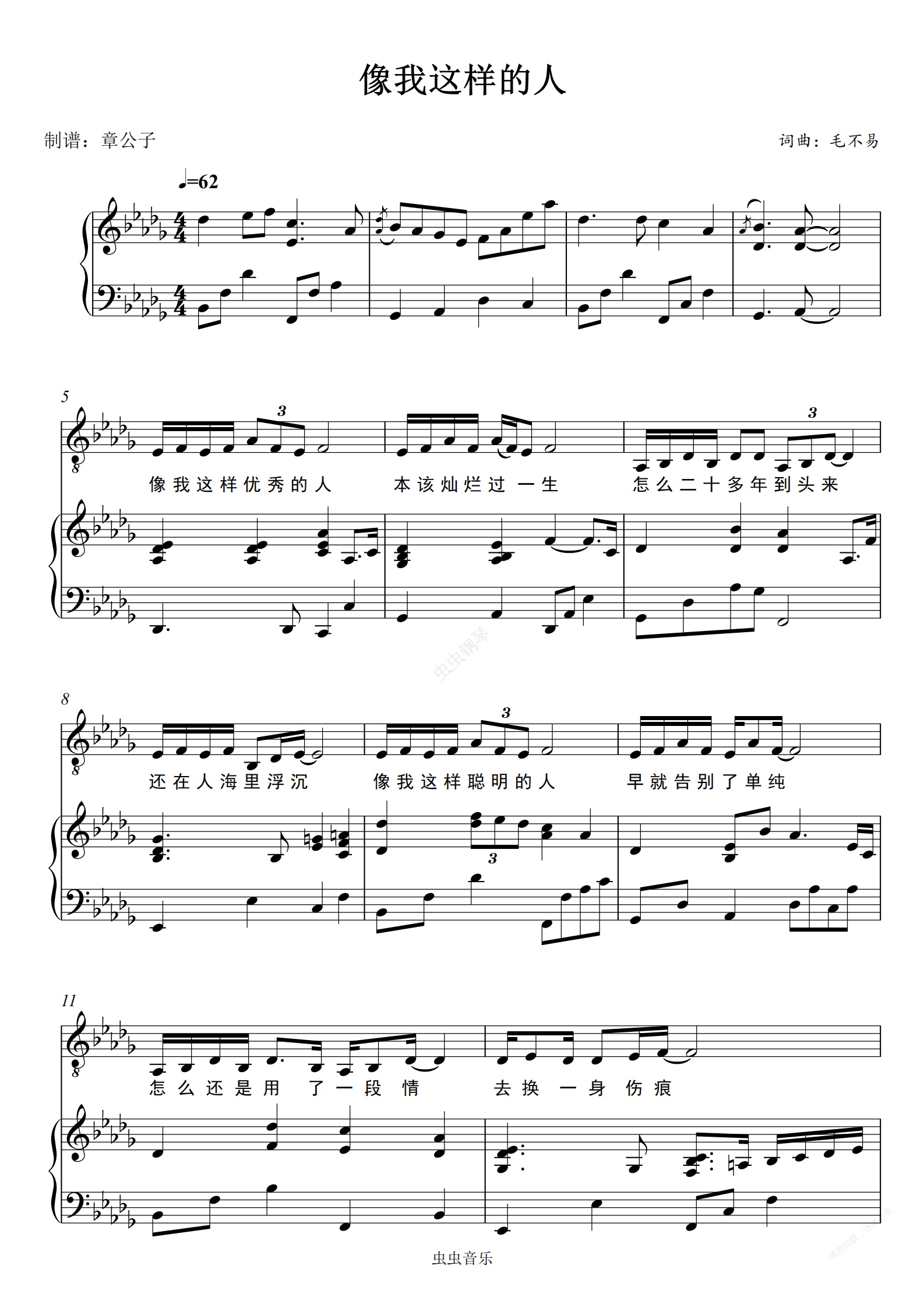 钢琴谱:像我这样的人-毛不易 完美bD调弹唱