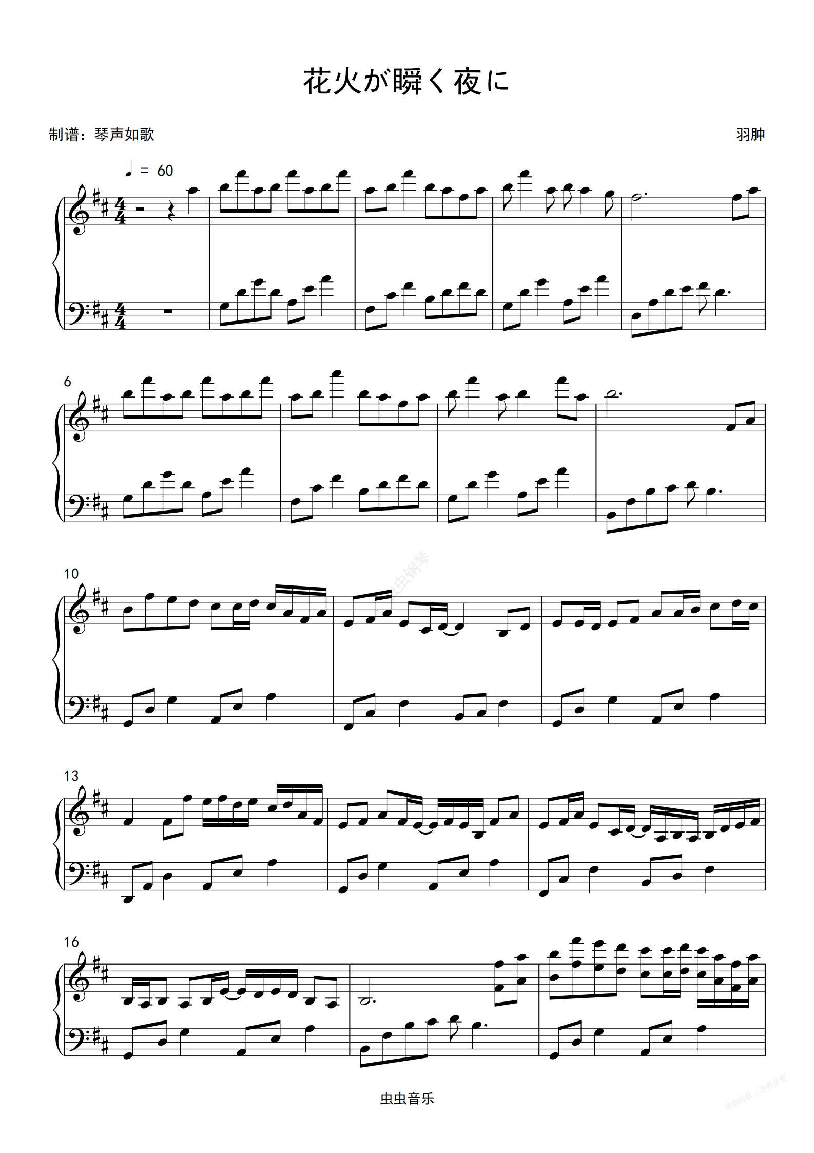 钢琴谱:花火が瞬く夜に -好听到爆炸轻音乐