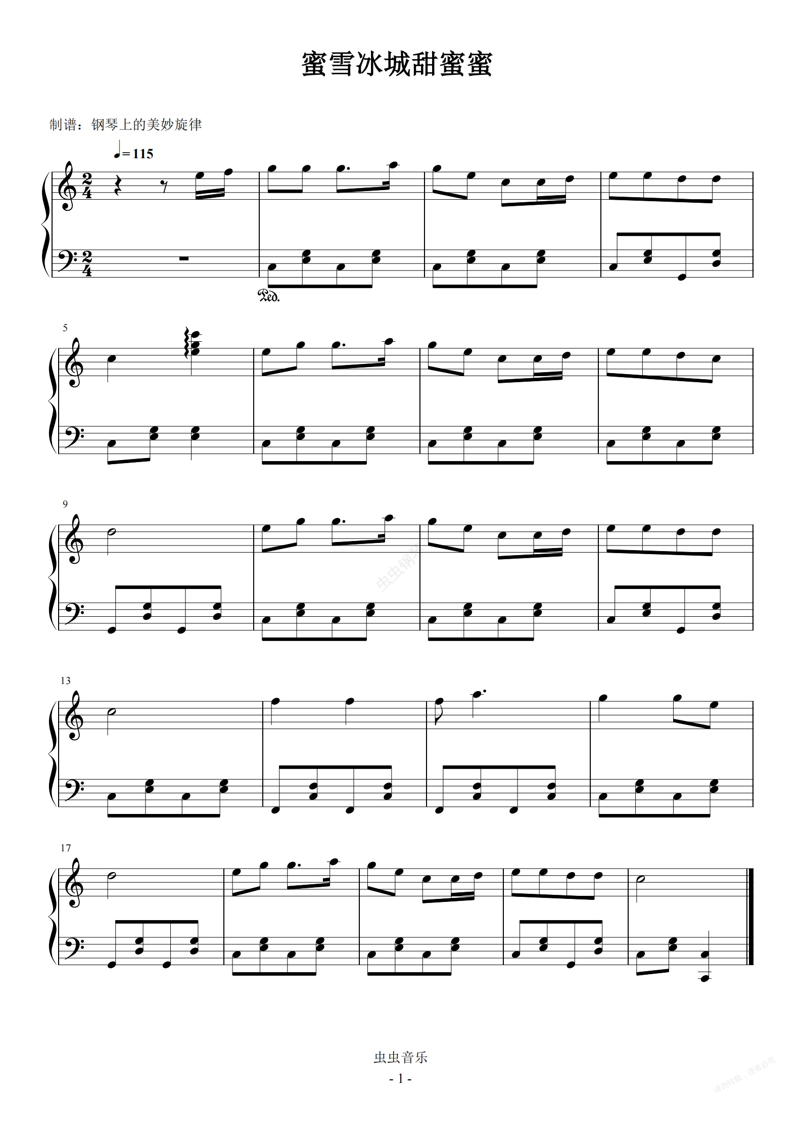 钢琴谱:蜜雪冰城甜蜜蜜 蜜雪冰城主题曲 C调简易版