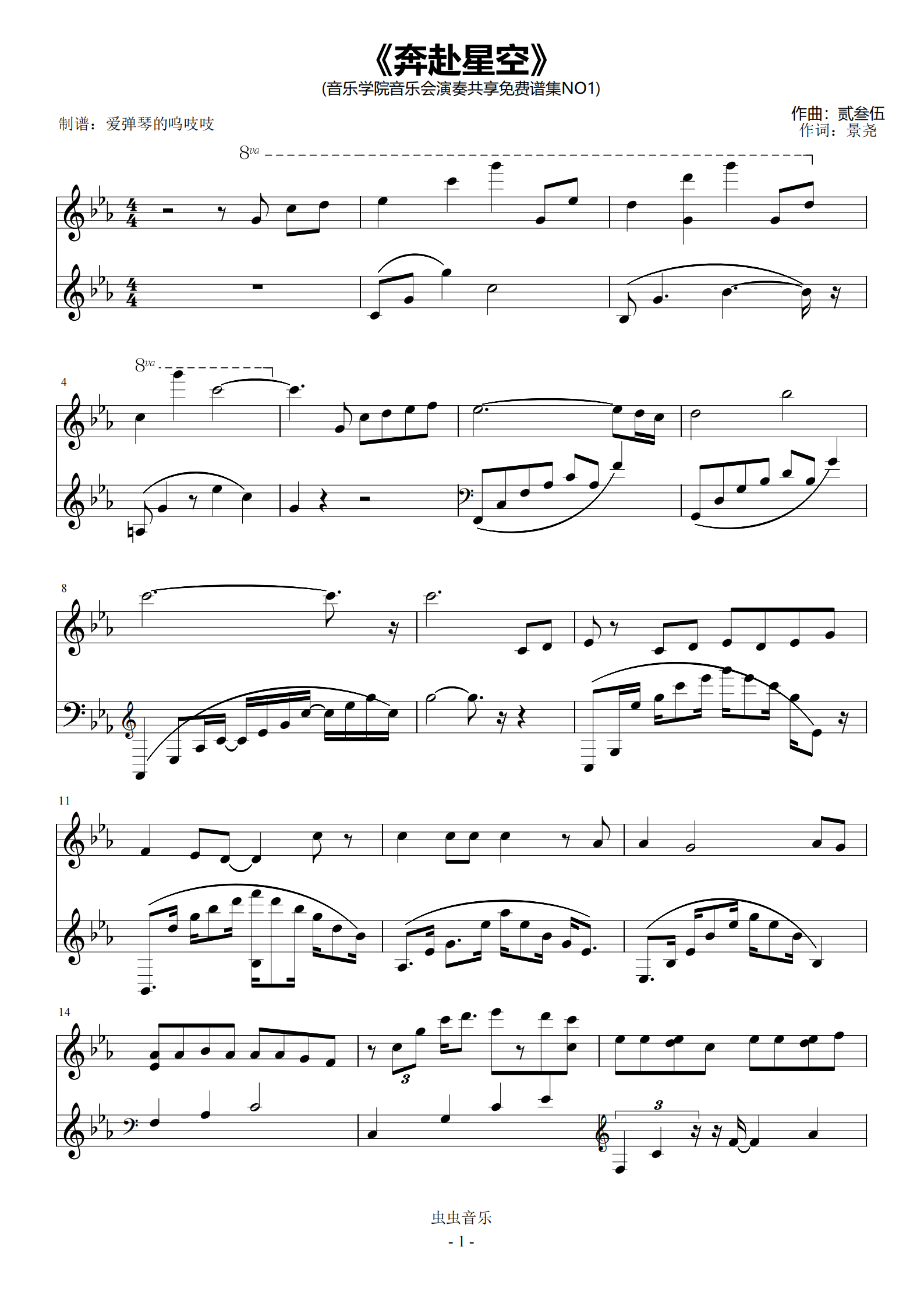 钢琴谱:《奔赴星空》国内流行钢琴音乐会音乐学院演奏共享