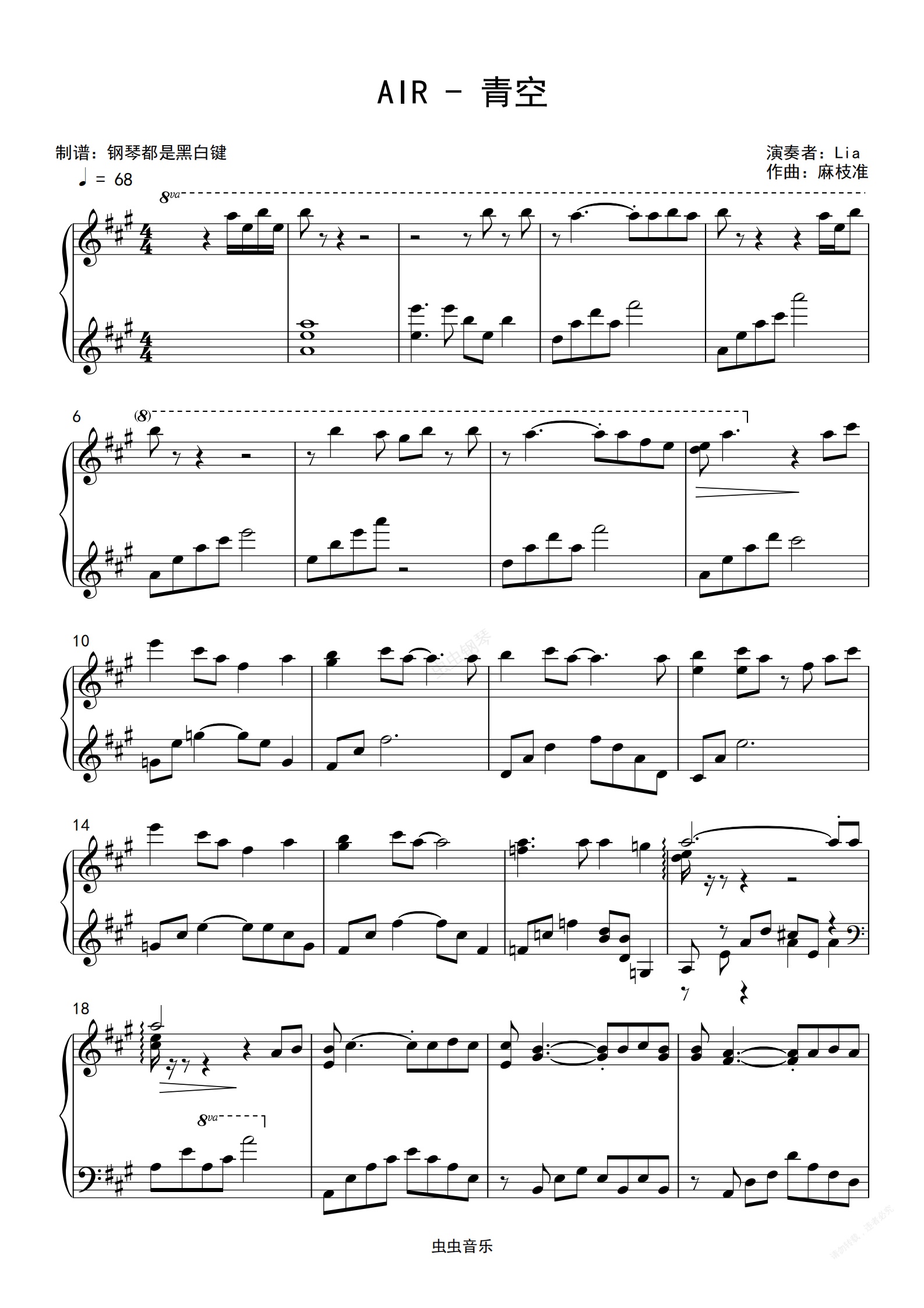 钢琴谱:AIR - 青空(超治愈钢琴独奏)