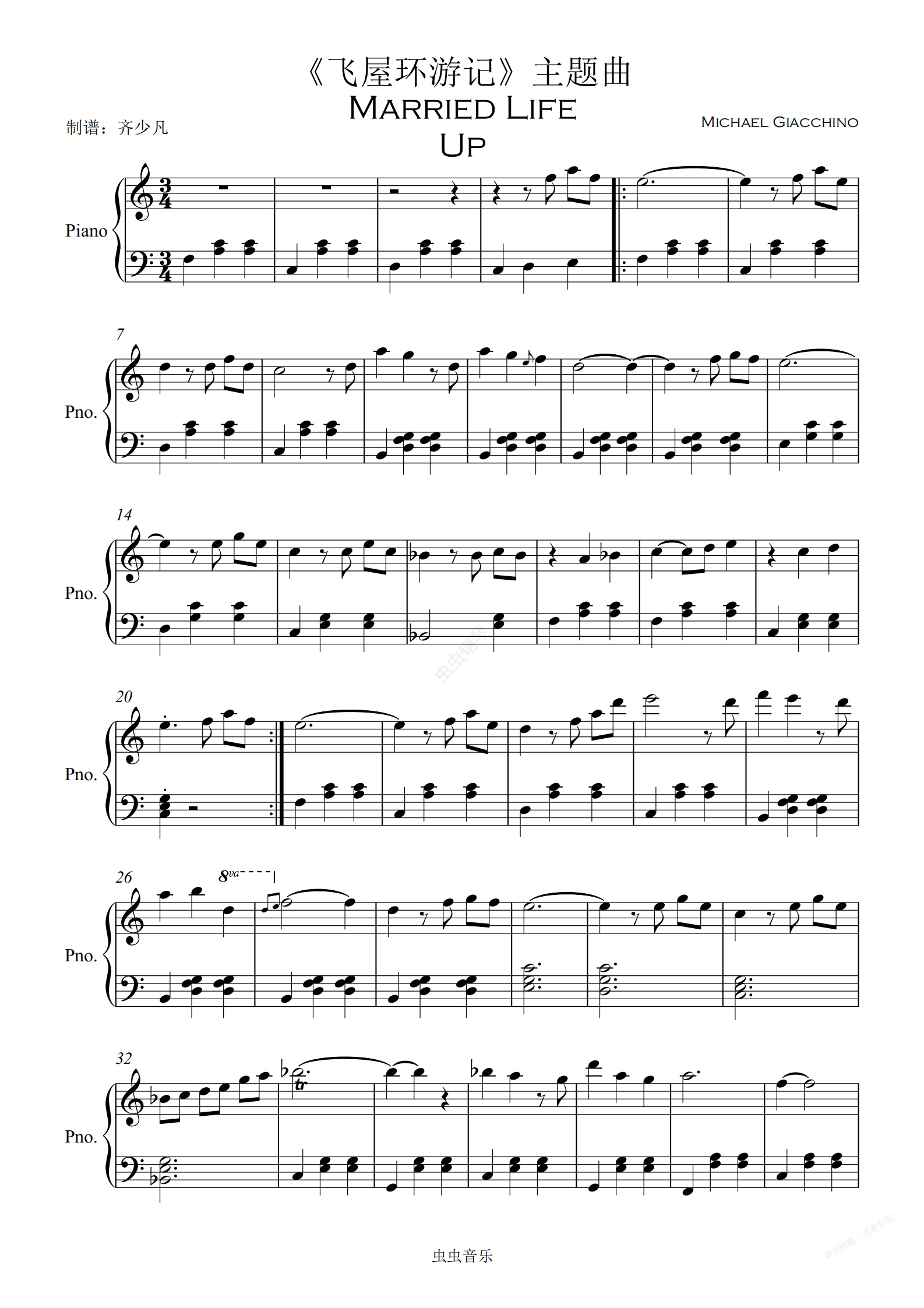 钢琴谱:《飞屋环游记》主题曲 Married Life
