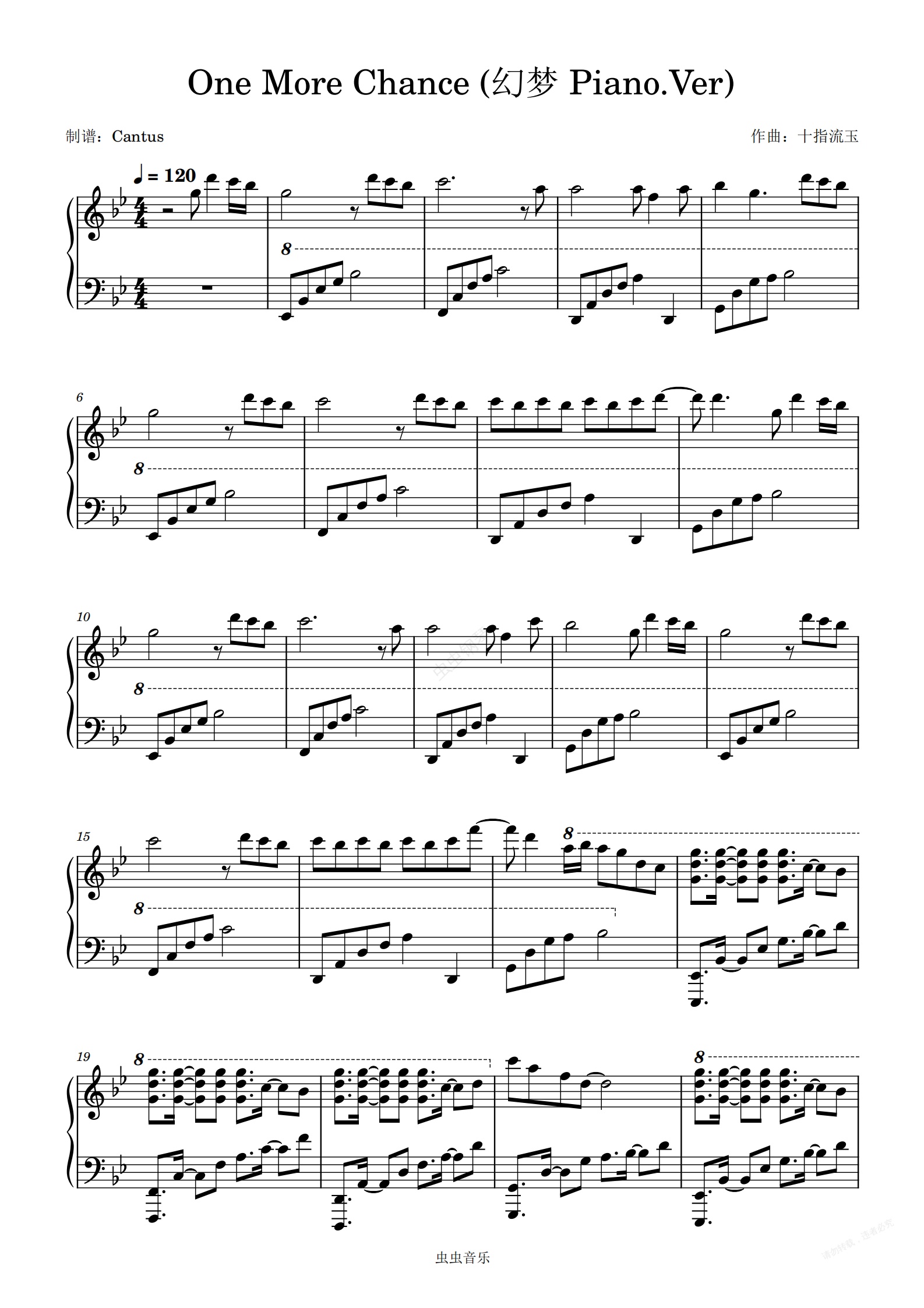 钢琴谱:One More Chance (幻梦 Piano.Ver)-十指流玉
