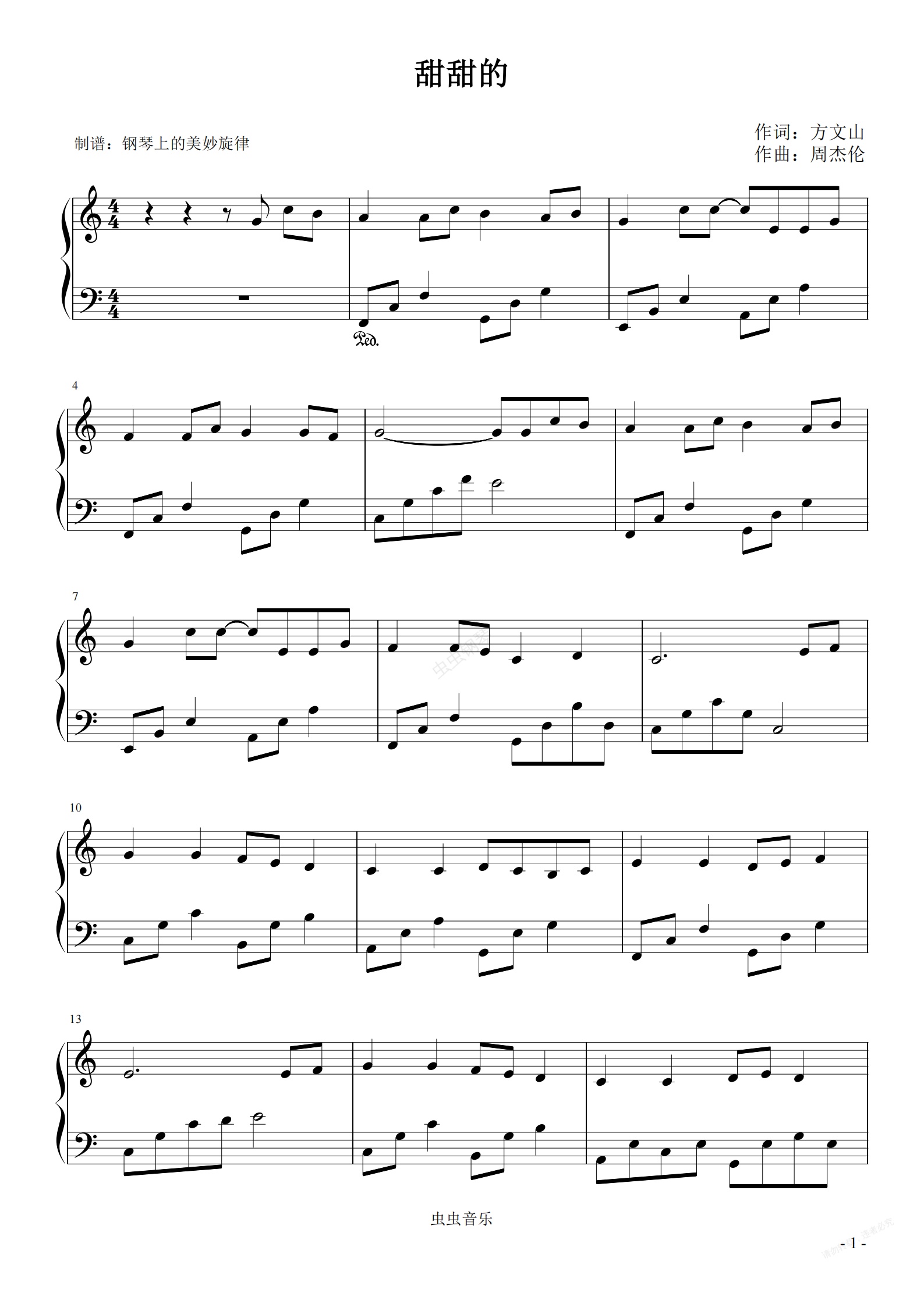 钢琴谱:甜甜的 周杰伦 C调简易版