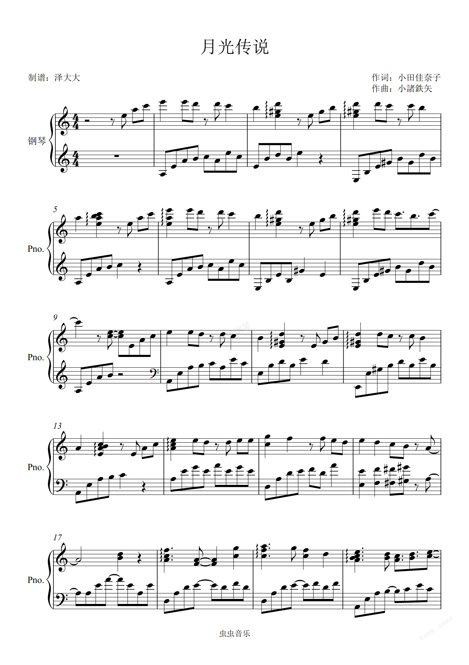 钢琴谱:月光传说【昼夜版】泽大大扒