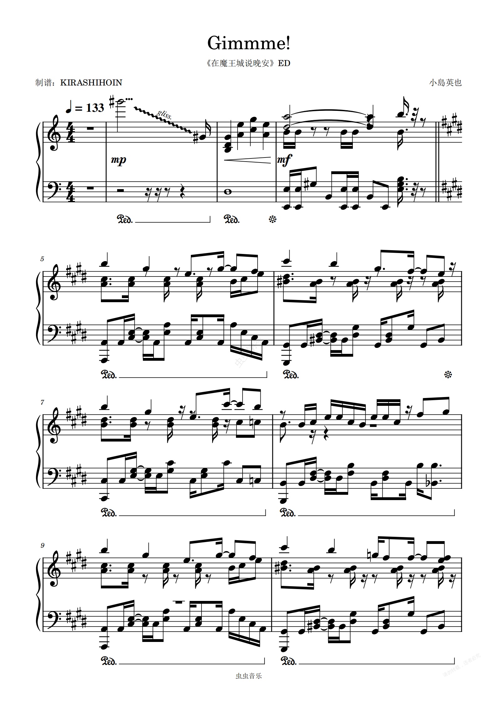 钢琴谱:Gimmme!(《在魔王城说晚安》ED)- ORESAMA
