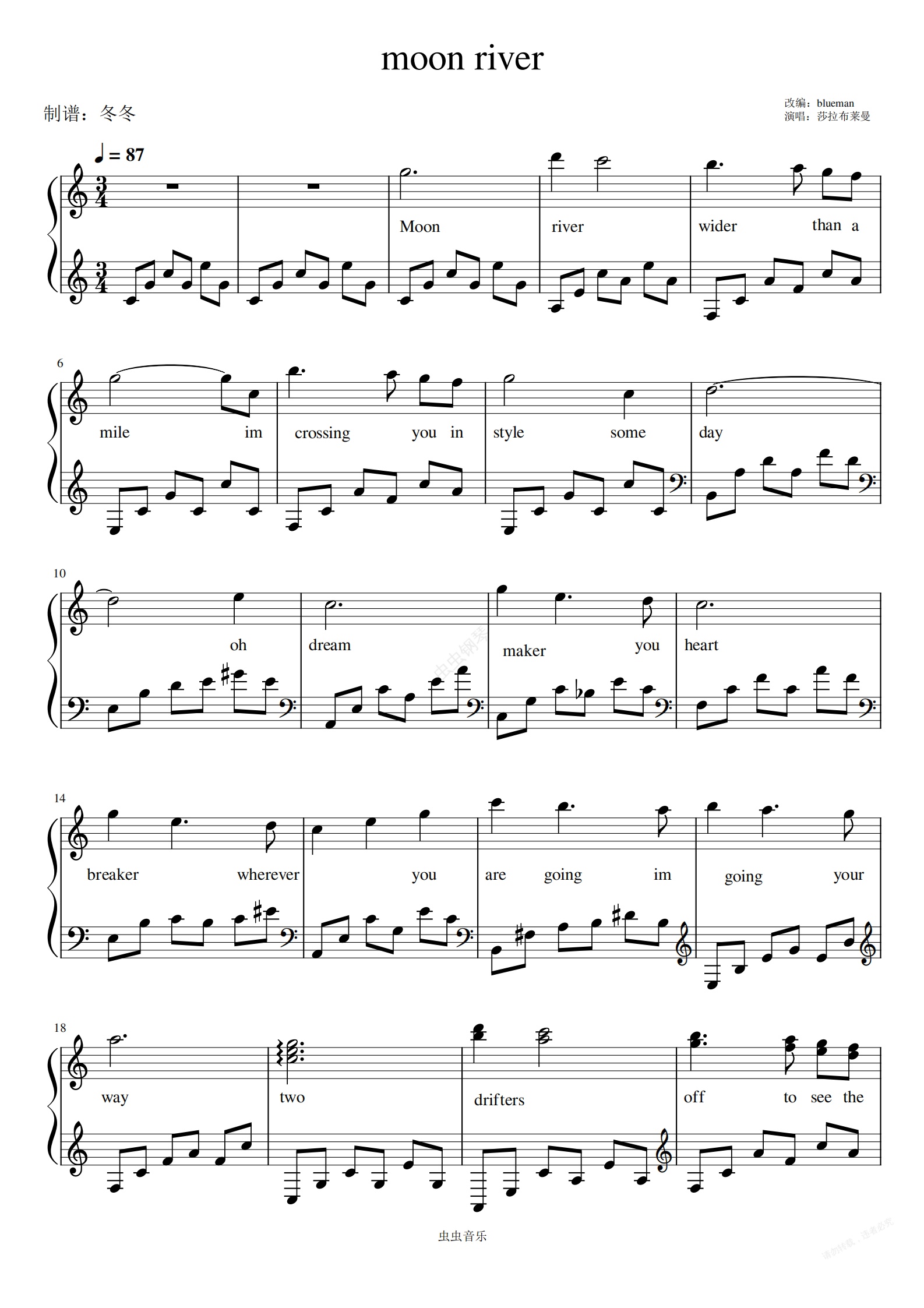 钢琴谱:moon river